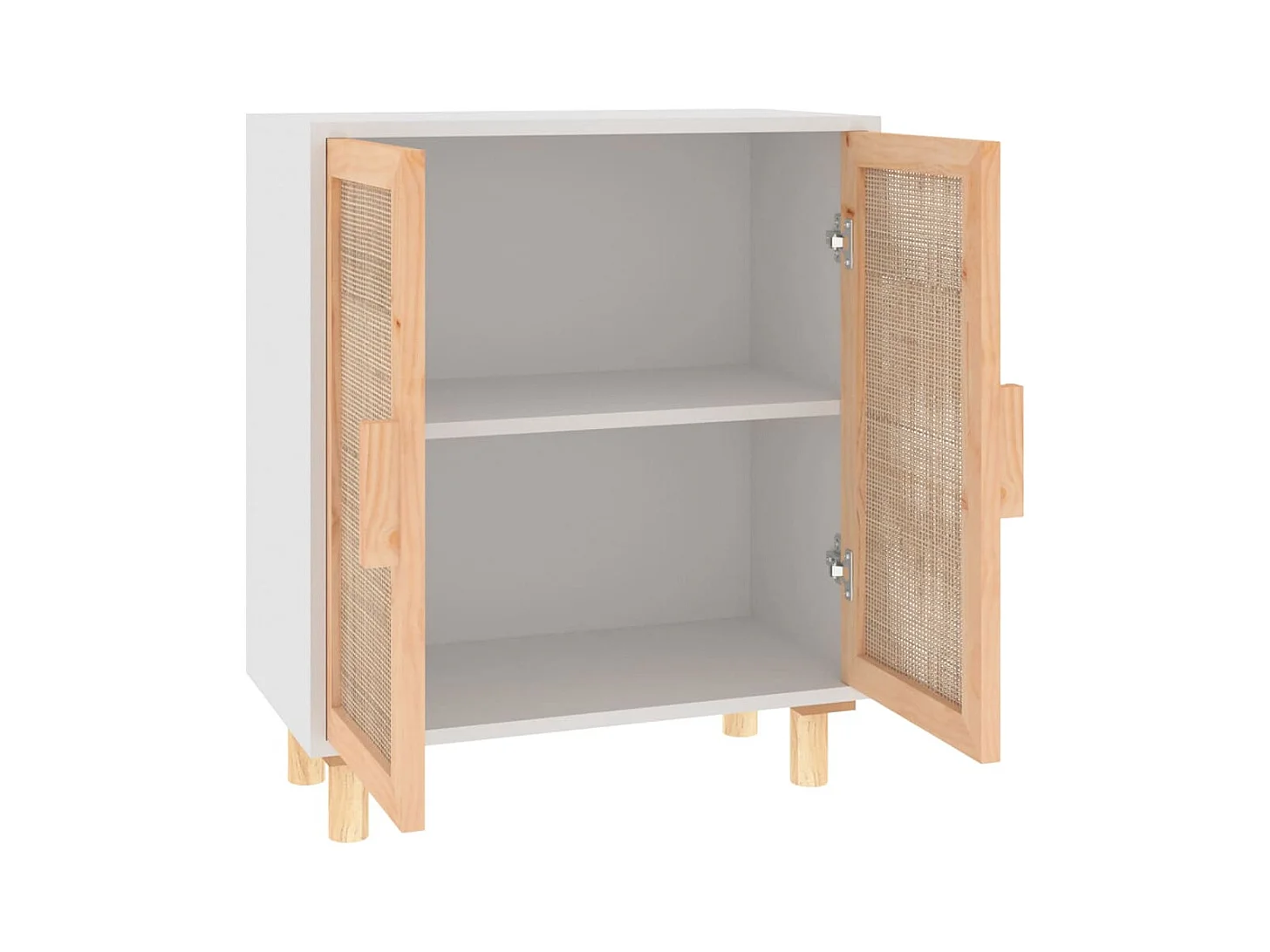 Credenza | Buffet | Armadio Bianca 60x30x70 cm Legno Massello Pino Rattan Naturale