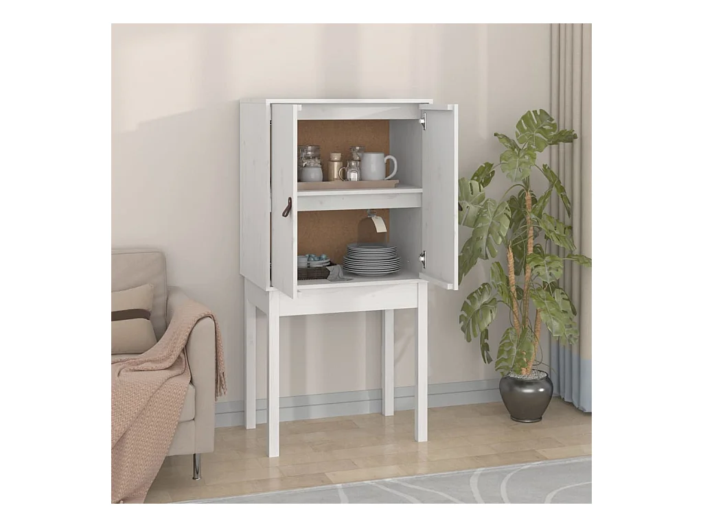 Credenza | Buffet | Armadio Bianca 60x34x75 cm in Legno Massello di Pino