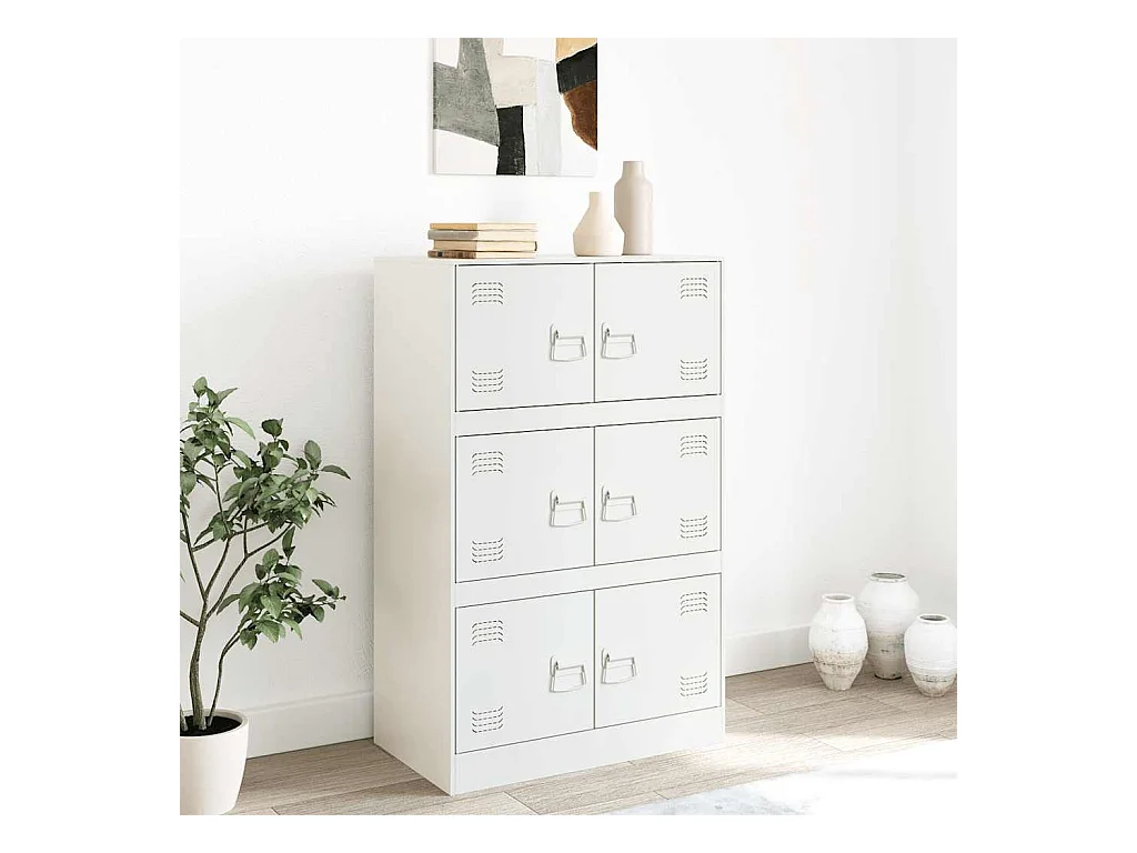 Credenza | Buffet | Armadio Bianca 100,5x39x107 cm in Acciaio Laminato a Freddo