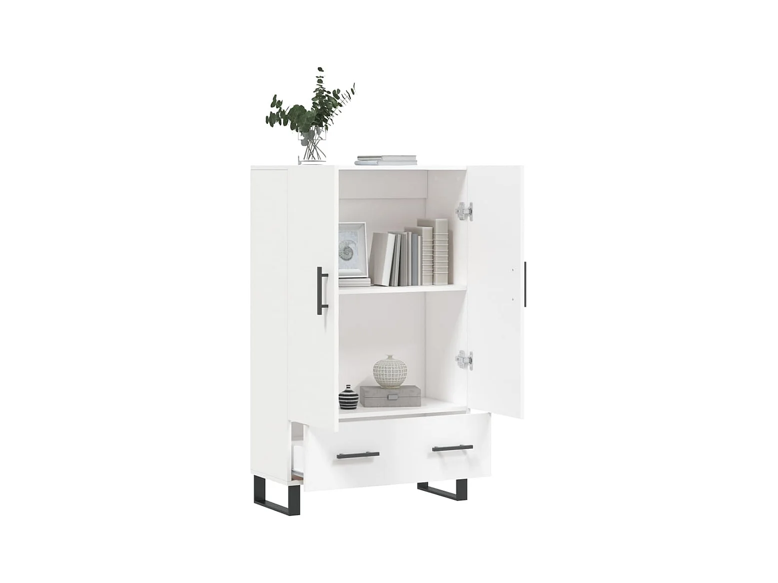 Credenza | Buffet | Armadio Bianco Lucido 69,5x31x115 cm in Legno Multistrato