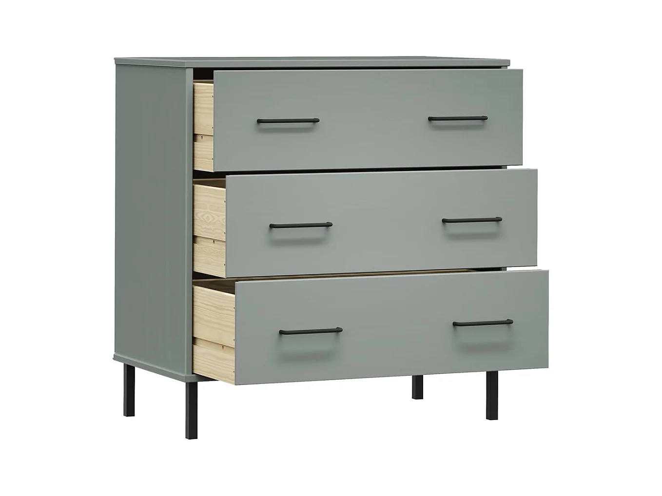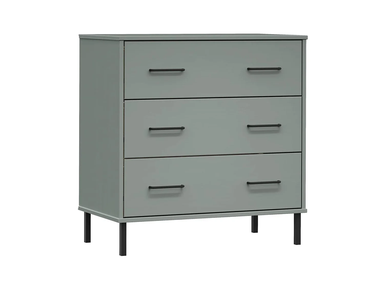 Credenza | Buffet | Armadio con 3 Cassetti Grigio 77x40x79,5cm Legno Massello OSLO