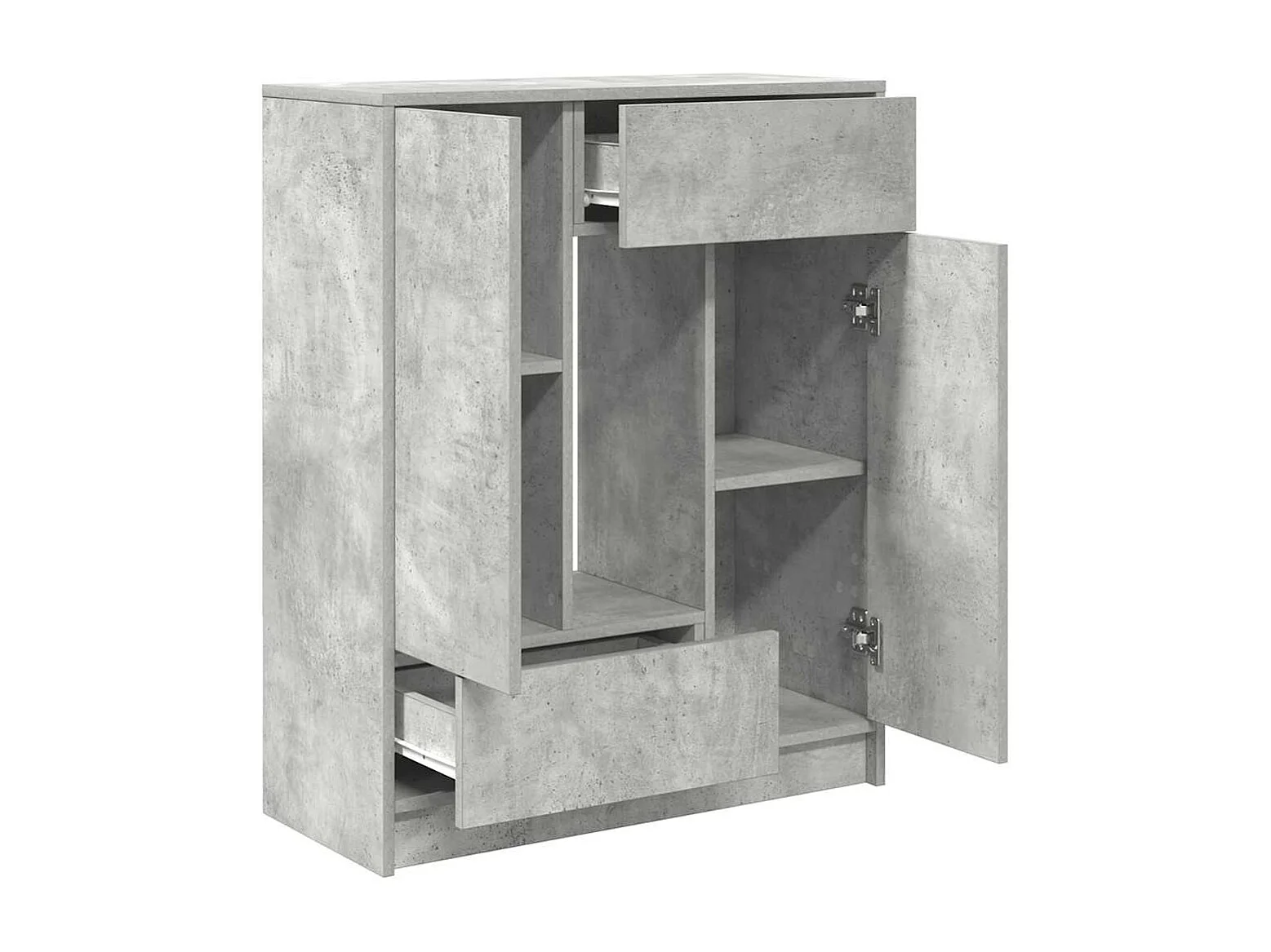 Credenza | Buffet | Armadio con Cassetti e Ante Grigio Cemento 73x31x90 cm