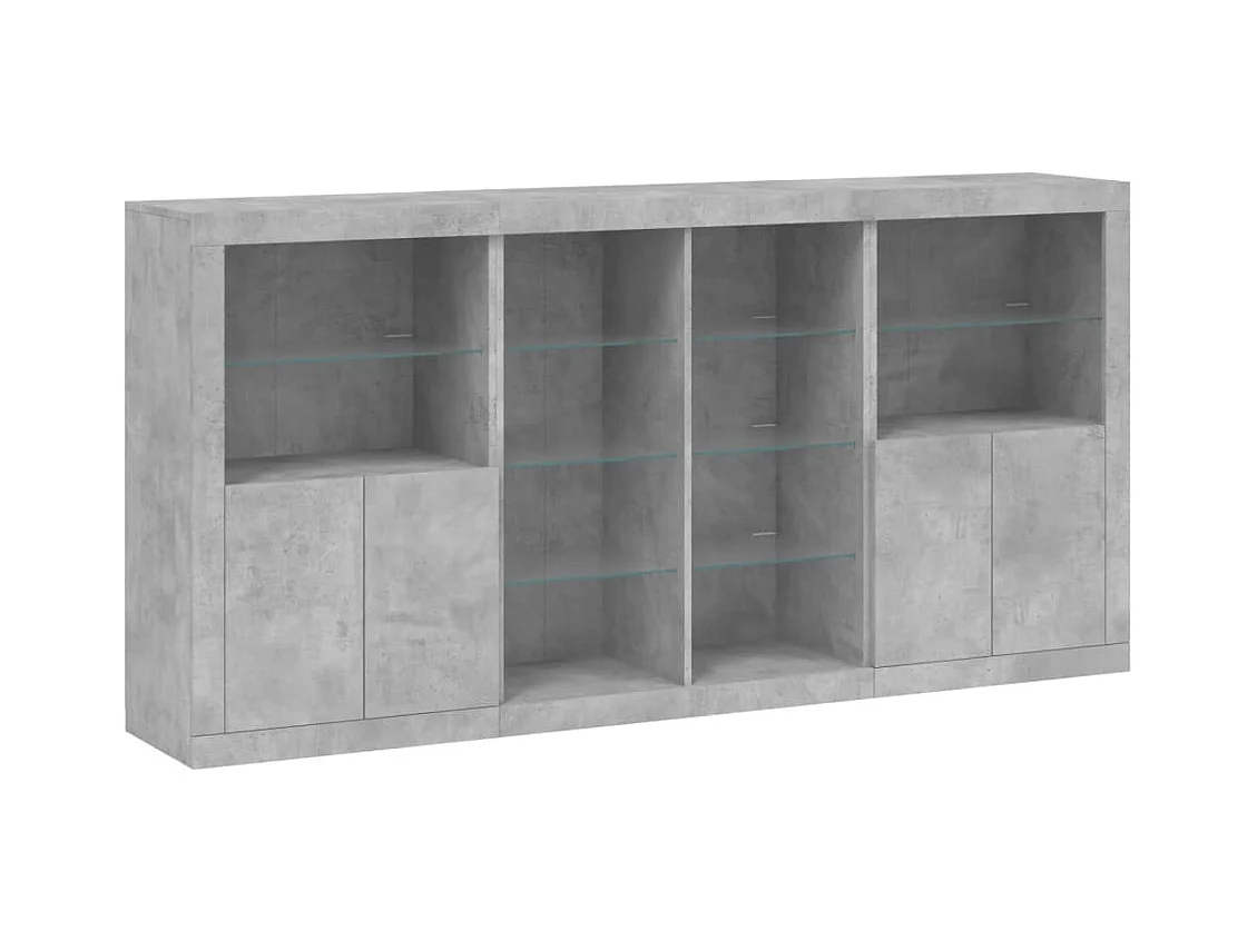 Credenze | Buffet | Armadi con Luci LED 3 pz Grigio Cemento in Legno Multistrato