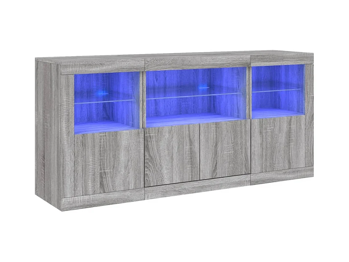 Credenze | Buffet | Armadi con Luci LED 3 pz Grigio Sonoma in Legno Multistrato