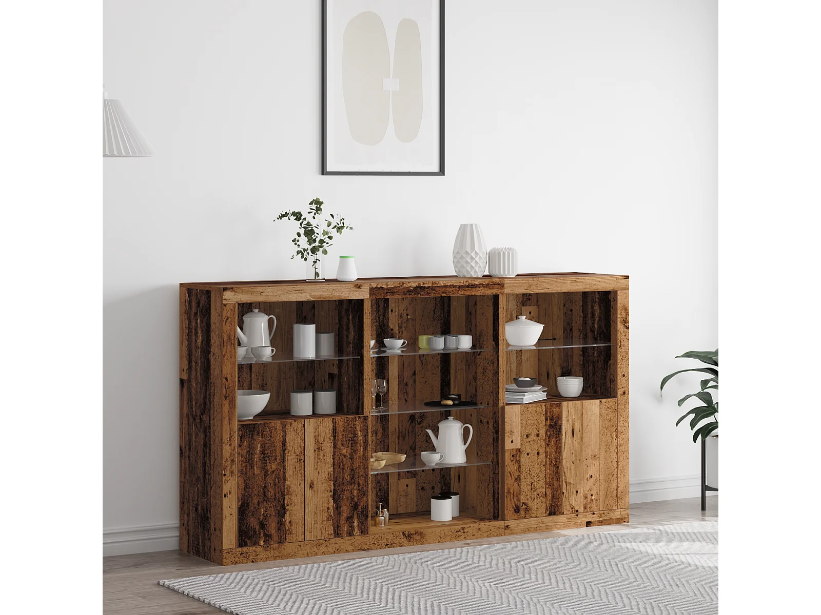 Credenza | Buffet | Armadio con luci LED Legno Vecchio 143 x 37 x 100 cm Legno ingegnerizzato
