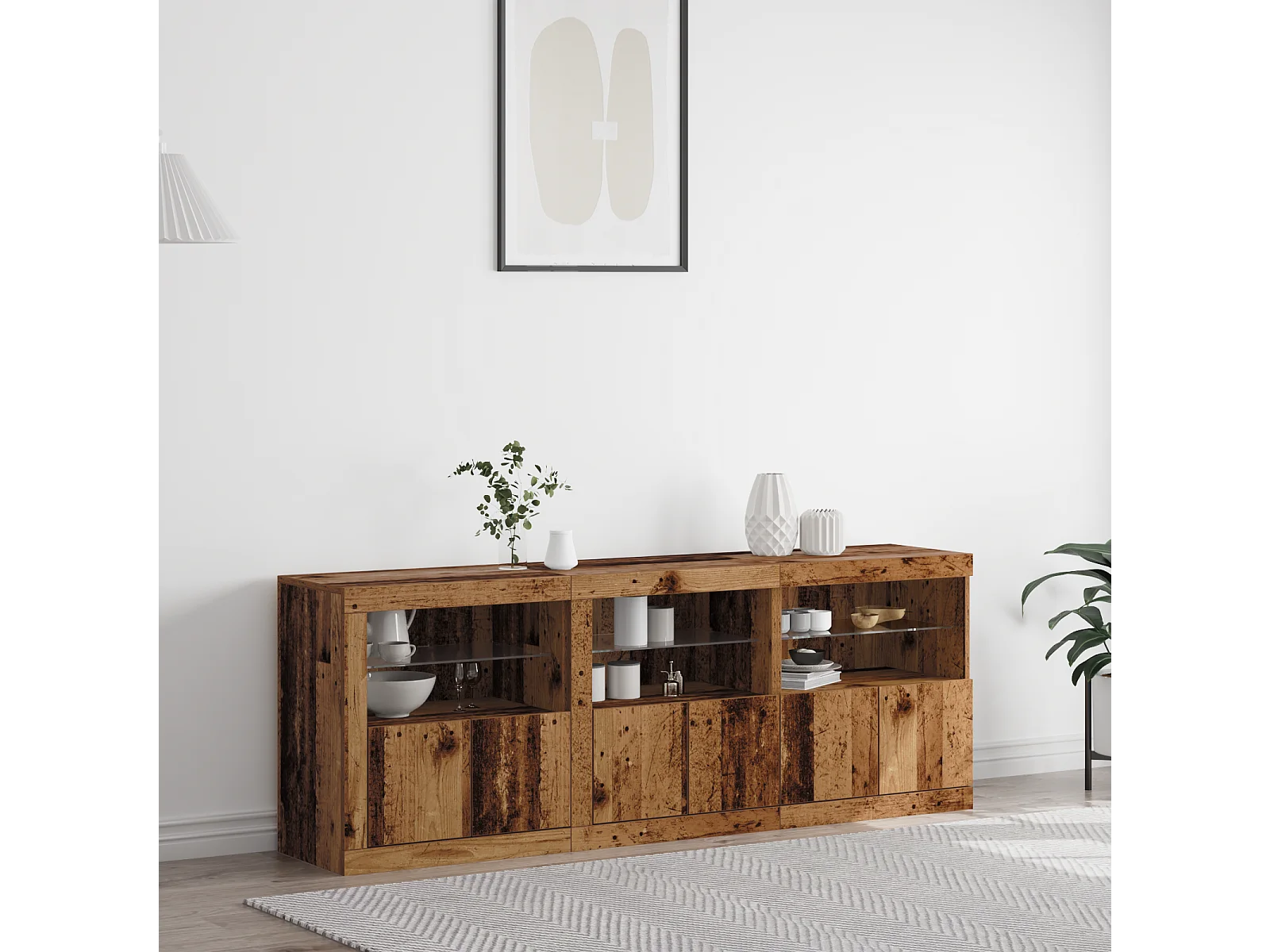 Credenza | Buffet | Armadio con Luci LED Legno Vecchio 181,5x37x67 cm Legno Ingegnerizzato