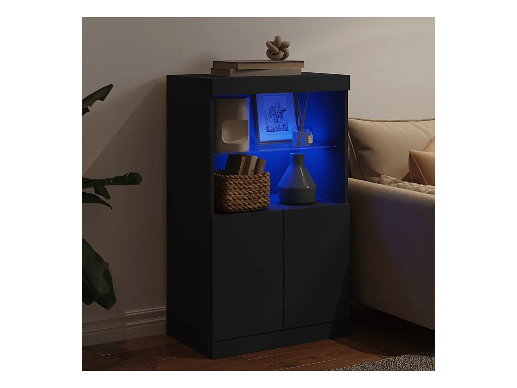 Credenza | Buffet | Armadio con Luci LED Nera 60,5x37x100 cm