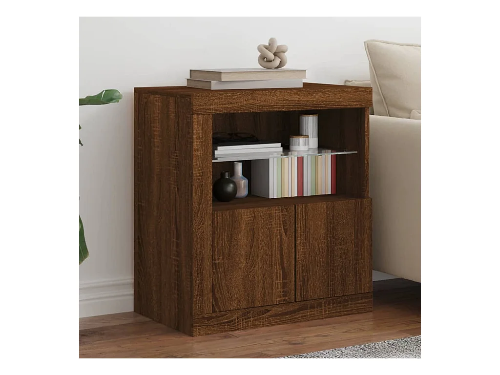 Credenza | Buffet | Armadio con Luci LED Rovere Marrone 60,5x37x67 cm
