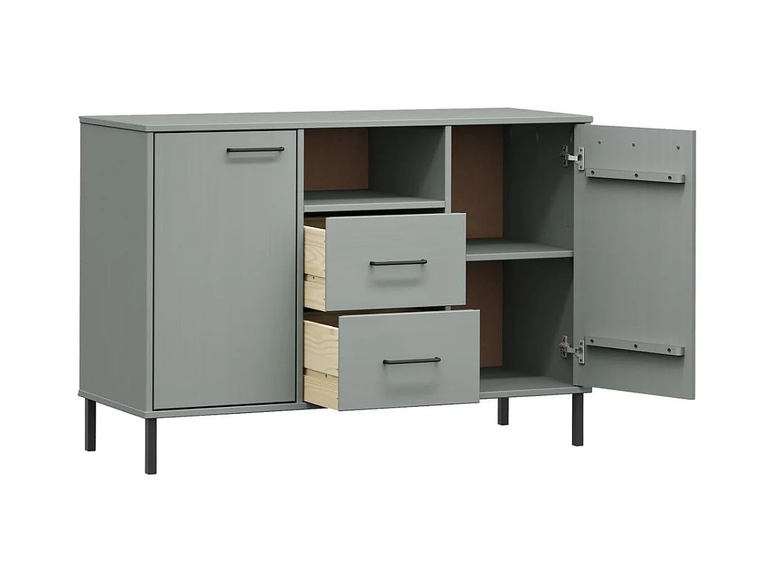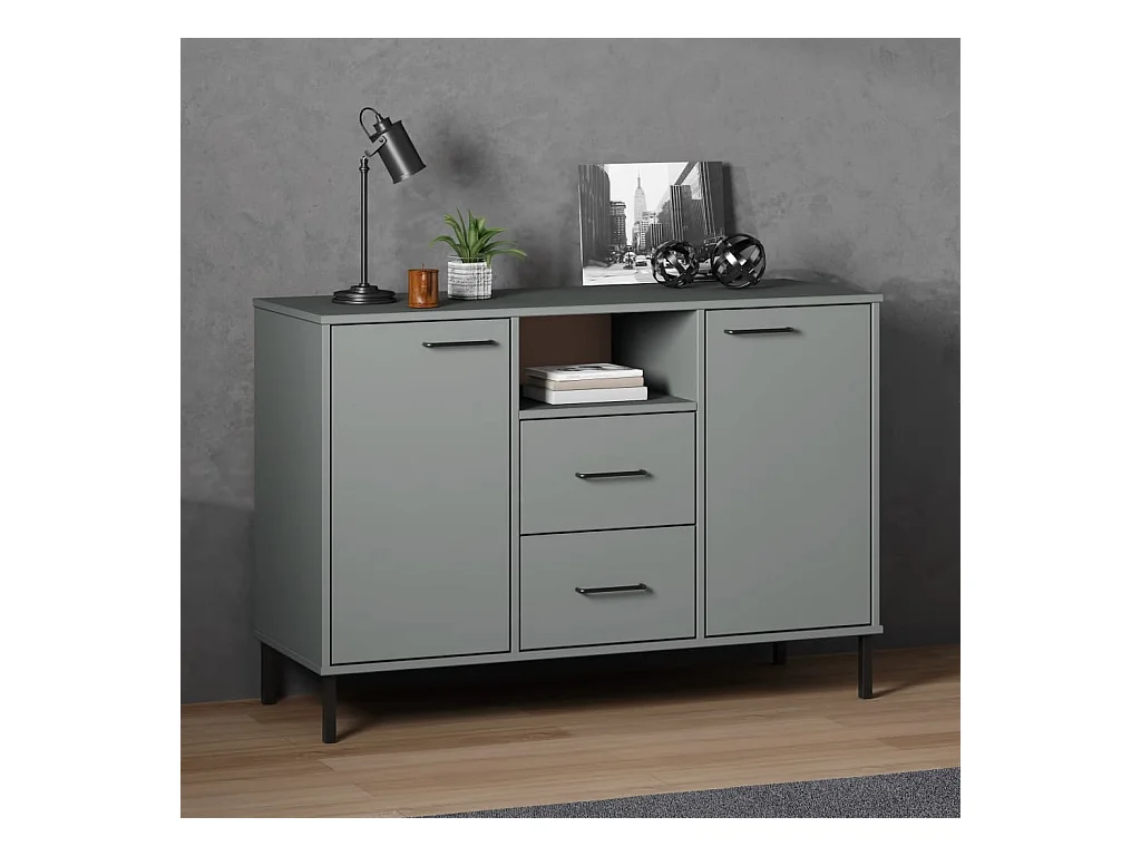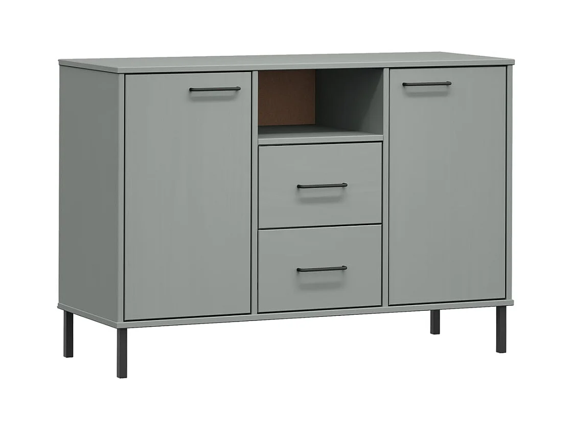 Credenza | Buffet | Armadio Gambe Metallo Grigio 113x40x77 cm Legno Massello OSLO