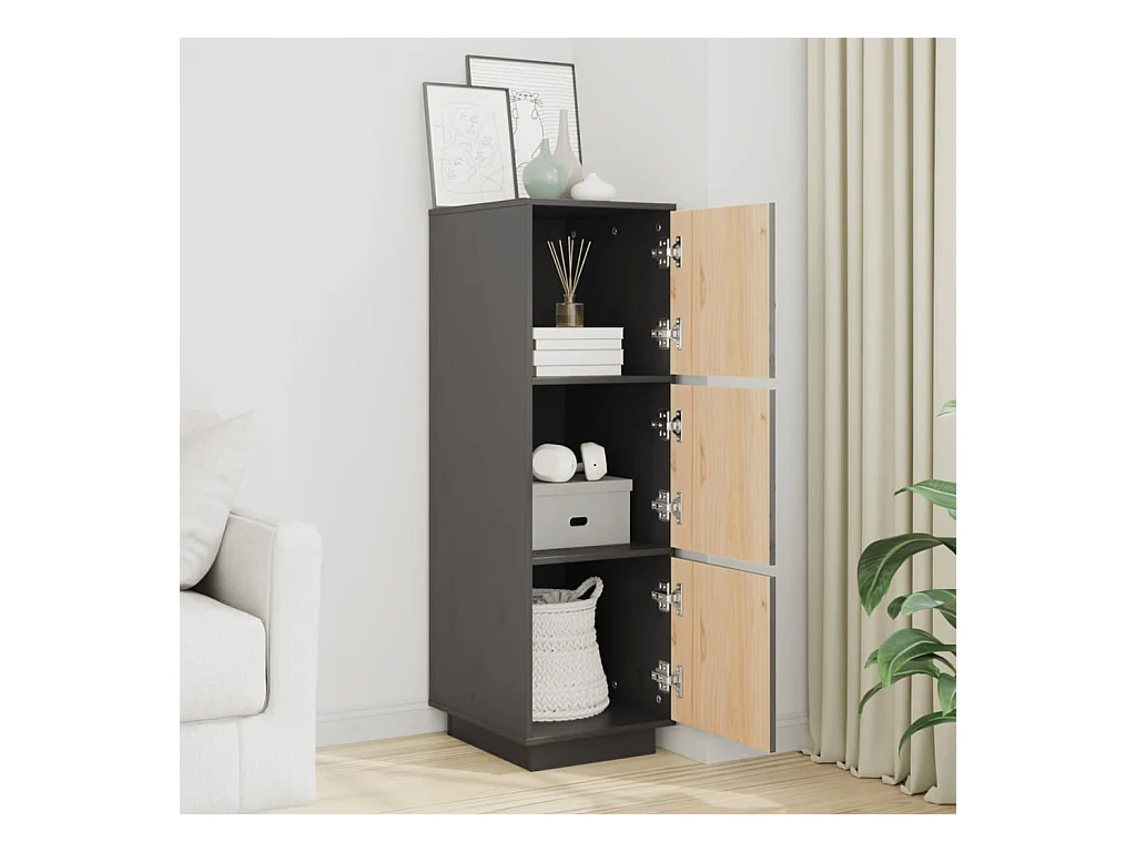 Credenza | Buffet | Armadio Grigia 34x40x108,5 cm in Legno Massello di Pino