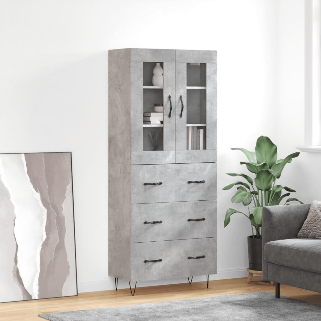 Credenza | Buffet | Armadio Grigio Cemento 69,5x34x180 cm in Legno Multistrato