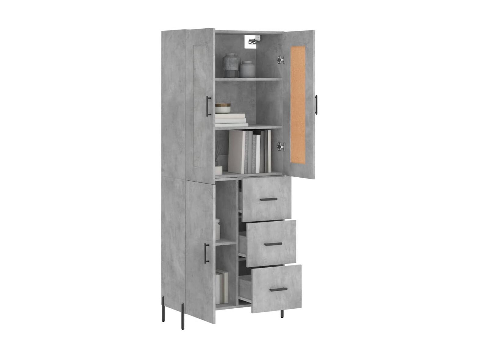 Credenza | Buffet | Armadio Grigio Cemento 69,5x34x180 cm in Legno Multistrato