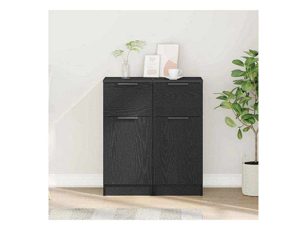 Credenza | Sideboard | Madie 2 pezzi Nero Rovere 30x30x70 cm Legno ingegnerizzato
