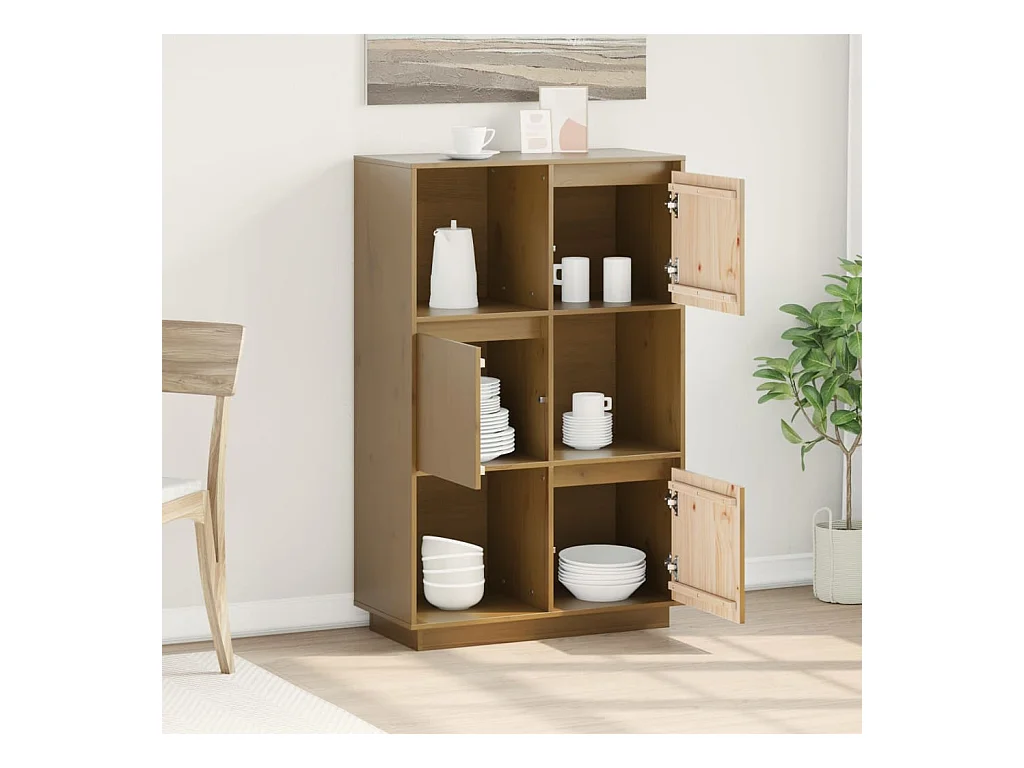 Credenza | Buffet | Armadio Marrone Ambrato 74x35x117 cm in Legno Massello di Pino