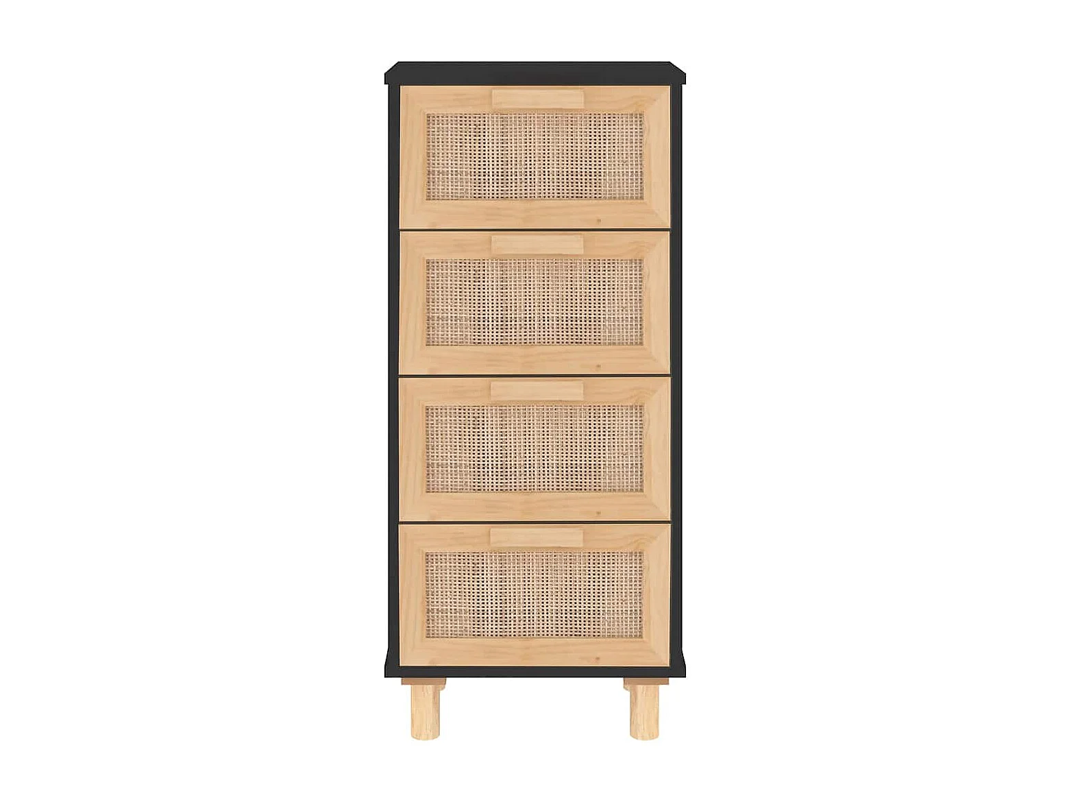 Credenza | Buffet | Armadio Nera 40x30x90 cm Legno Massello Pino e Rattan Naturale