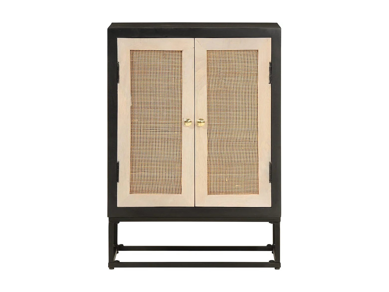 Credenza | Buffet | Armadio Nera 55x30x77 cm in Legno Massello di Mango e Ferro