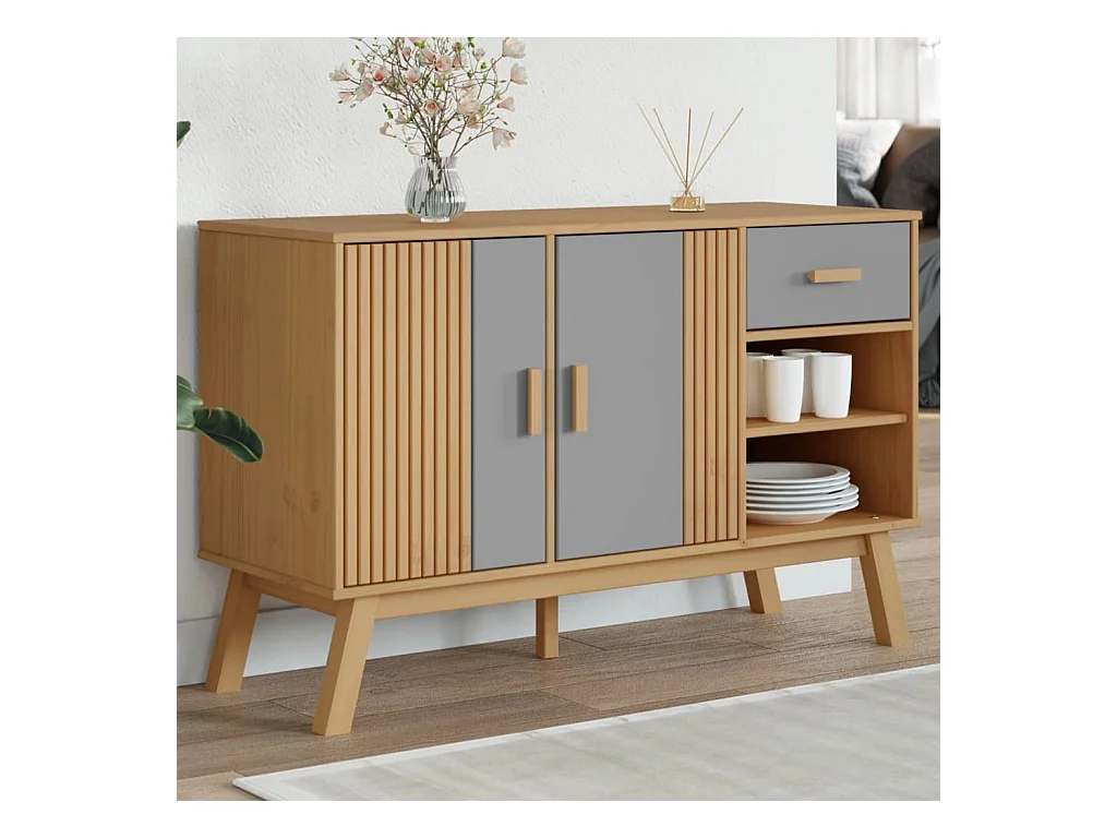 Credenza | Buffet | Armadio OTTA Marrone e Grigio 113,5x43x73 cm in Legno di Pino