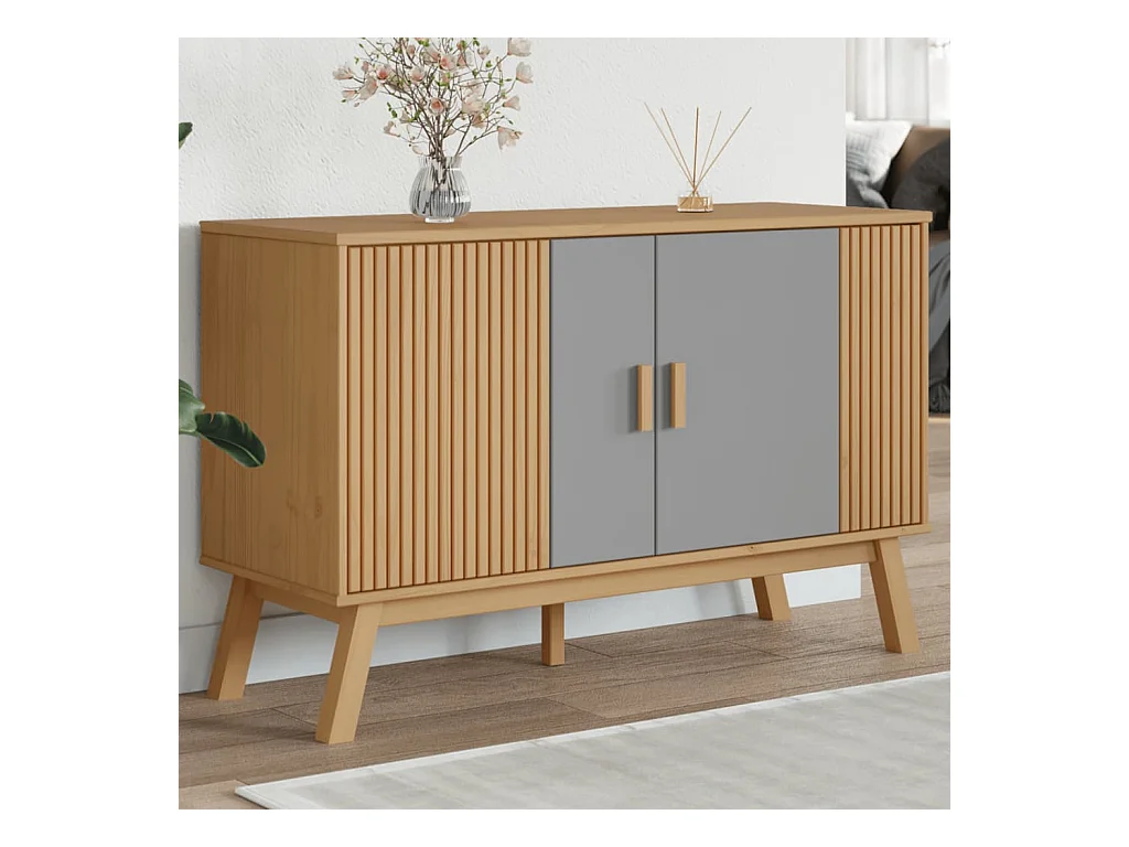 Credenza | Buffet | Armadio OTTA Marrone e Grigio 113,5x43x73 cm in Legno di Pino