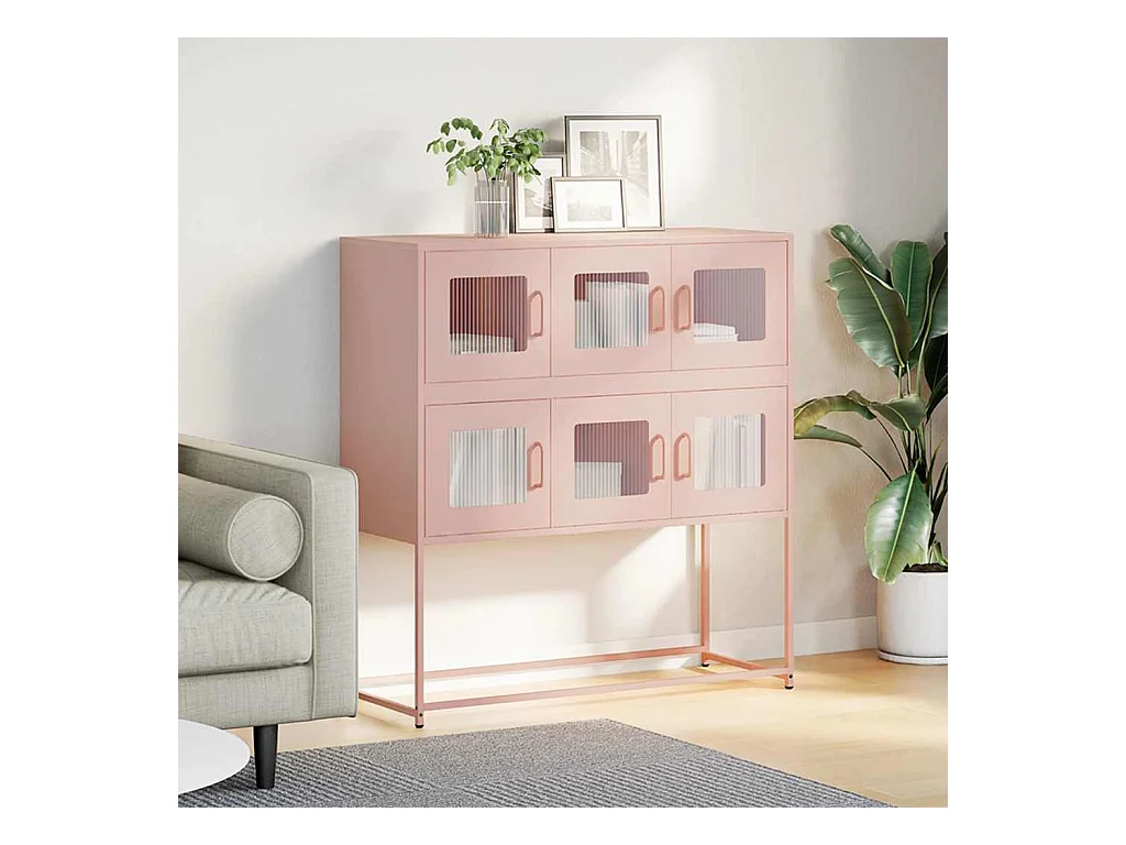 Credenza | Buffet | Armadio Rosa 100,5x39x107 cm in Acciaio Laminato a Freddo