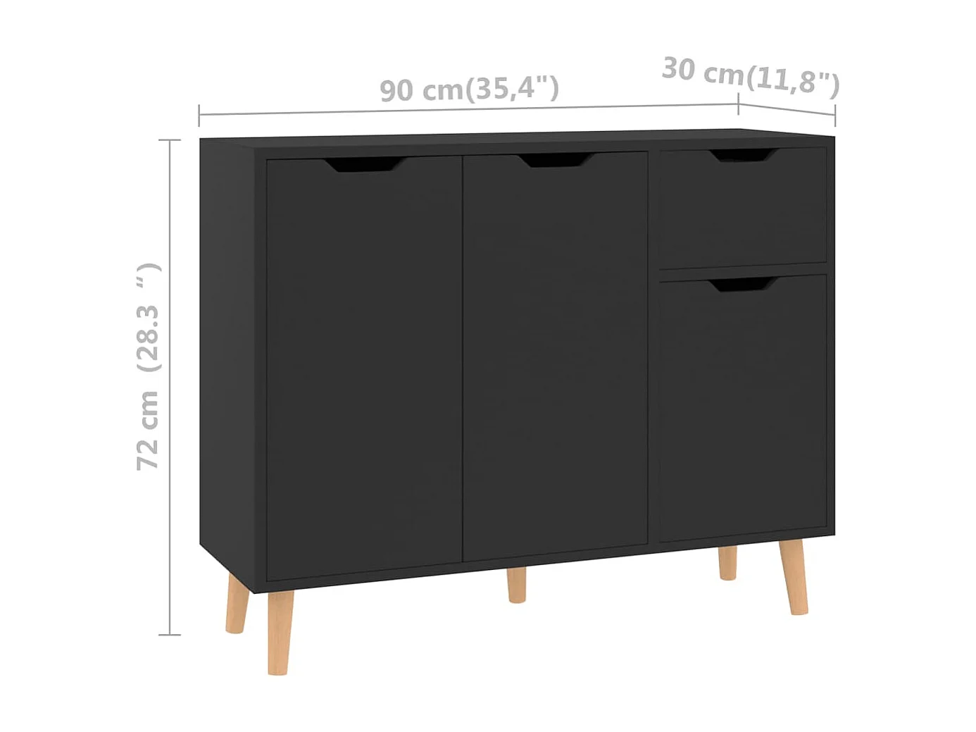 Credenza buffet cassettiera mobile contenitore organizer cucina soggiorno lucido 90 x 30 x 72 cm derivati del legno nero 02_0036168
