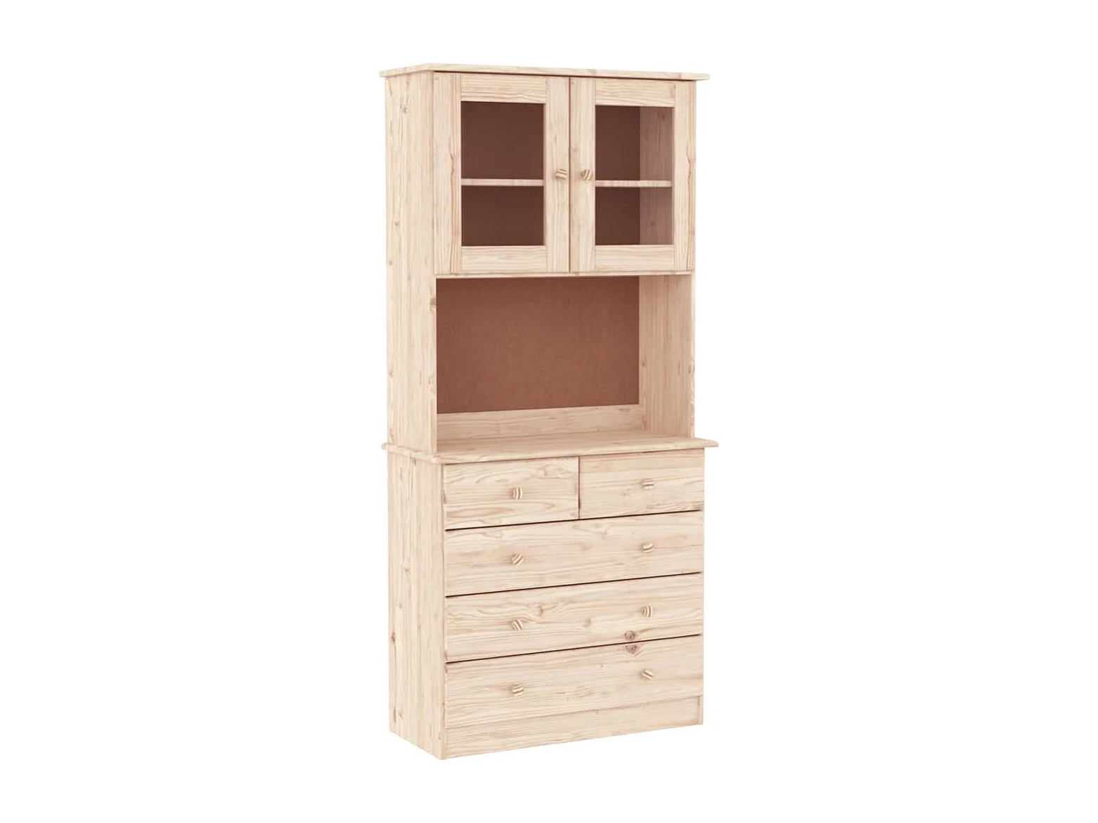 Credenza buffet cassettiera mobile contenitore organizer cucina soggiorno salotto ALTA 77 x 35 x 165 cm legno massello di pino marrone 02_0029673