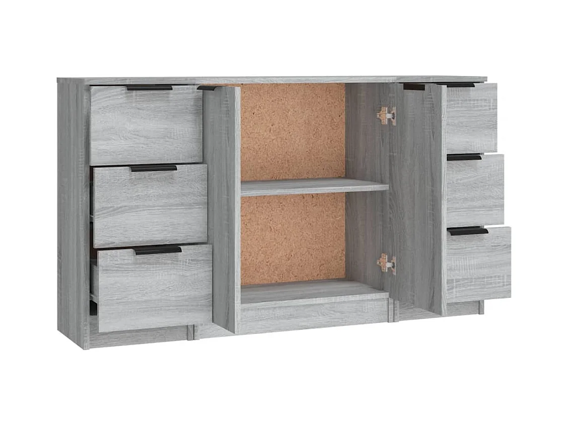Credenza buffet cassettiera mobile contenitore organizer cucina soggiorno soggiorni 3 pezzi Sonoma MDF grigio 02_0037180