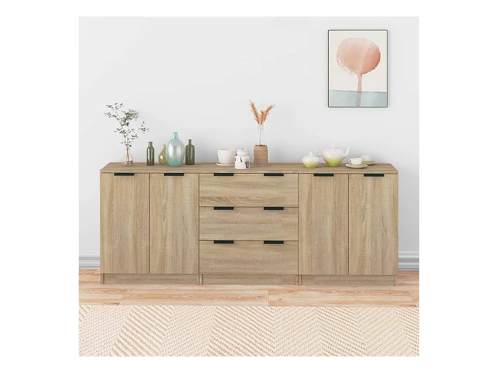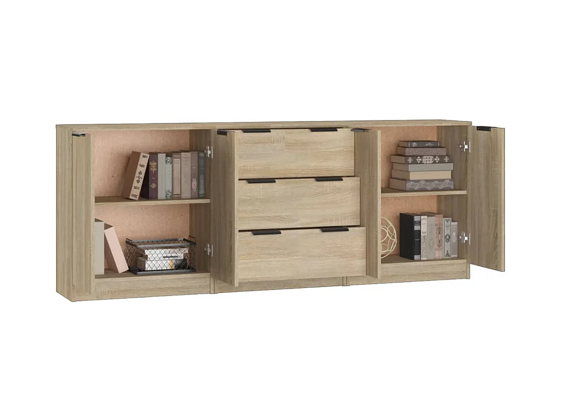 Credenza buffet cassettiera mobile contenitore organizer cucina soggiorno soggiorni 3 pezzi Sonoma MDF marrone 02_0037108
