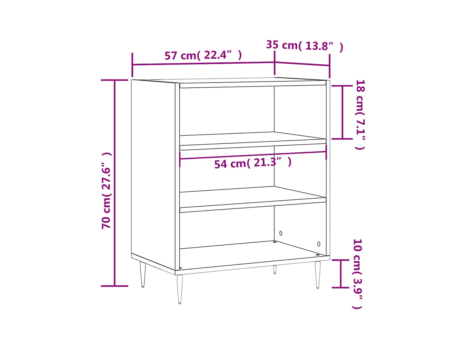 Credenza buffet cassettiera mobile contenitore organizer cucina soggiorno soggiorno 57 x 35 x 70 cm pannello composito bianco 02_0030323