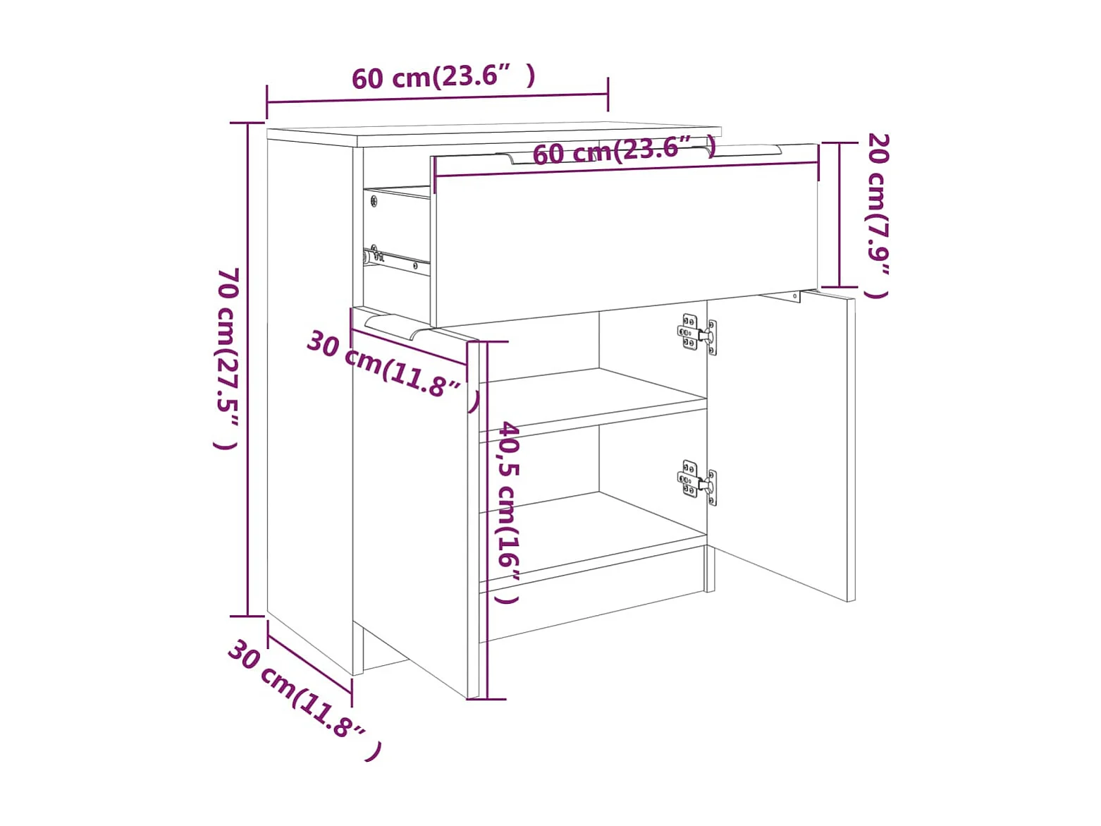 Credenza buffet cassettiera mobile contenitore organizer cucina soggiorno soggiorno 60 x 30 x 70 cm derivati del legno marrone 02_0031275