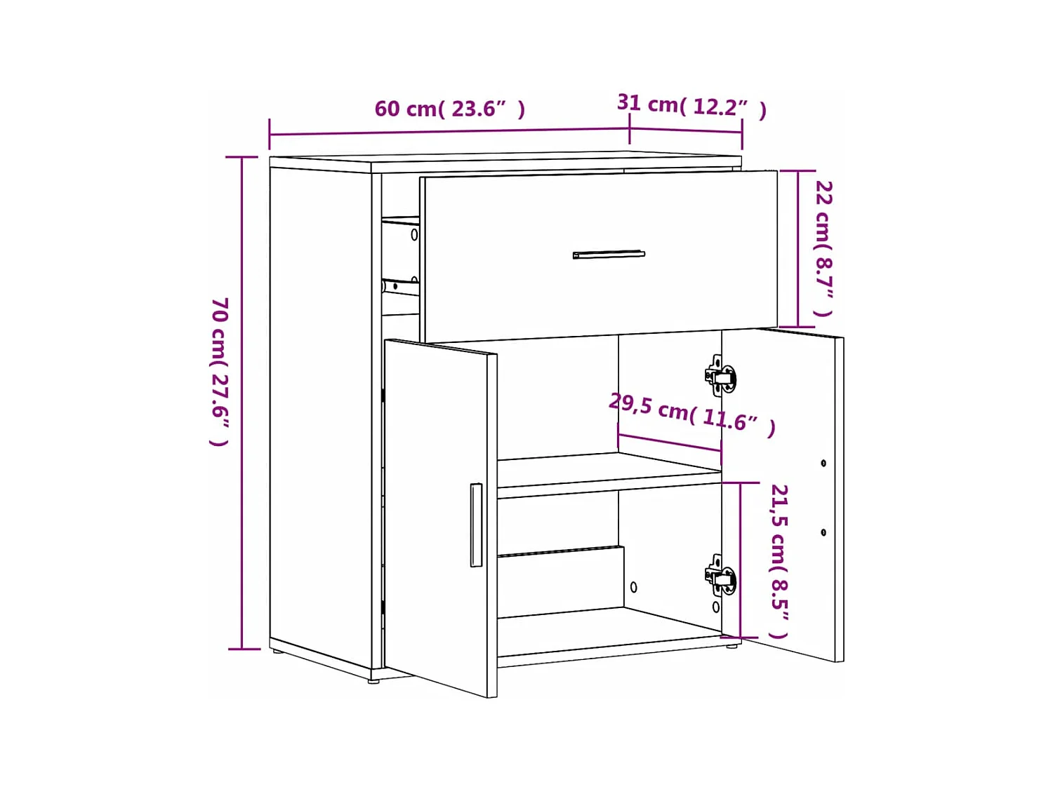 Credenza Nero 60x31x70 cm in Legno Multistrato