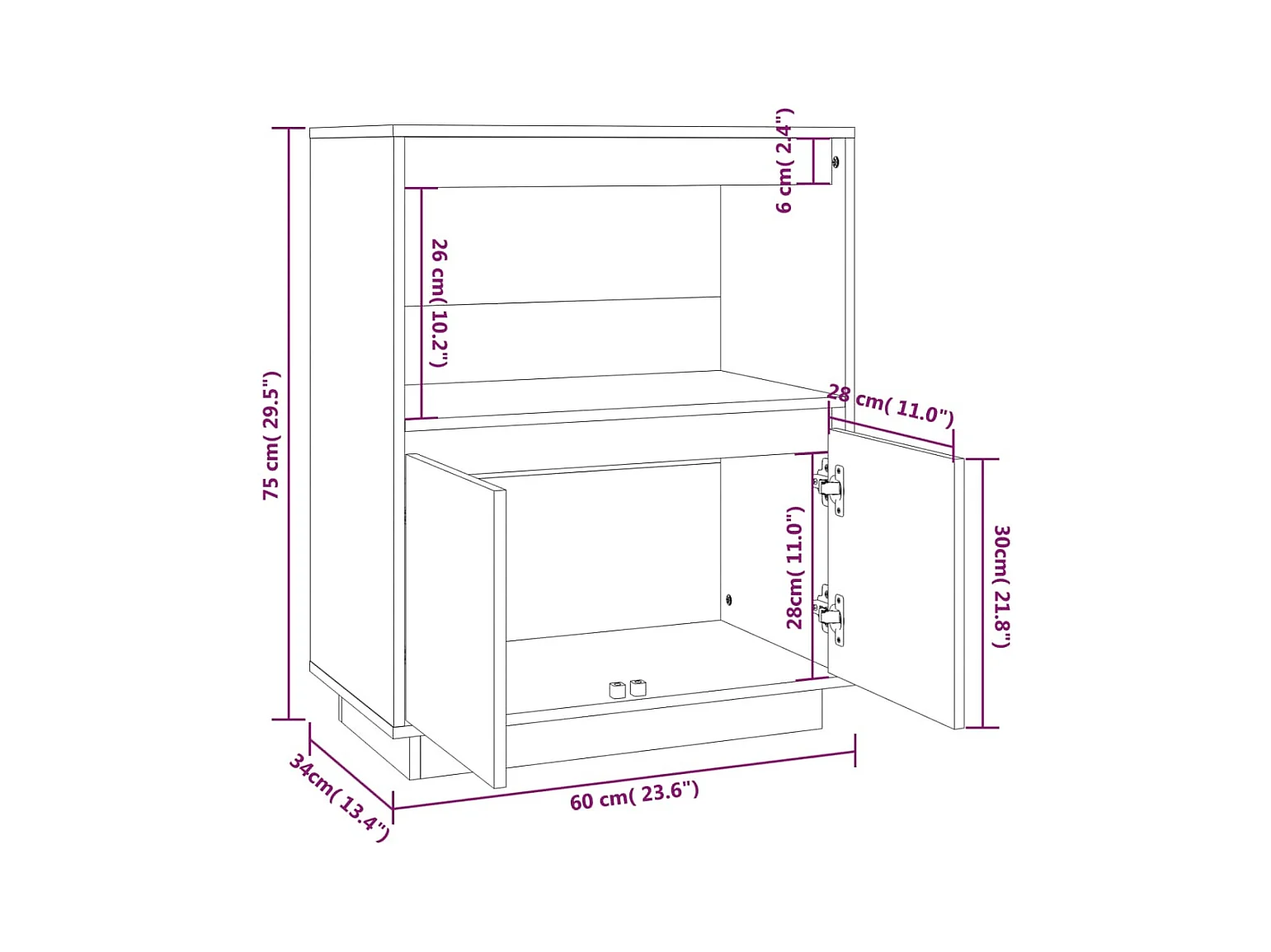 Credenza Bianca 60x34x75 cm in Legno Massello di Pino