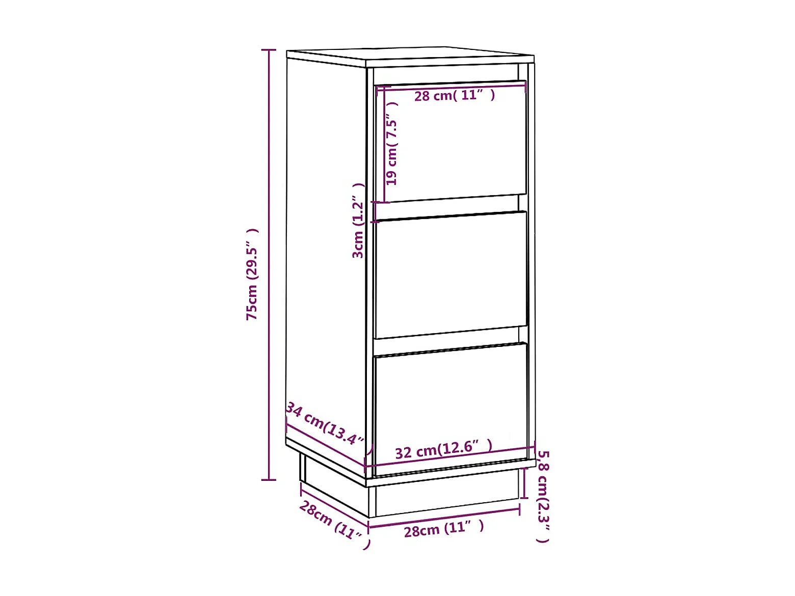 Credenza cassettiera cassettiera mobile contenitore organizer cucina soggiorno soggiorno 32 x 34 x 75 cm legno massello di pino marrone 02_0029571
