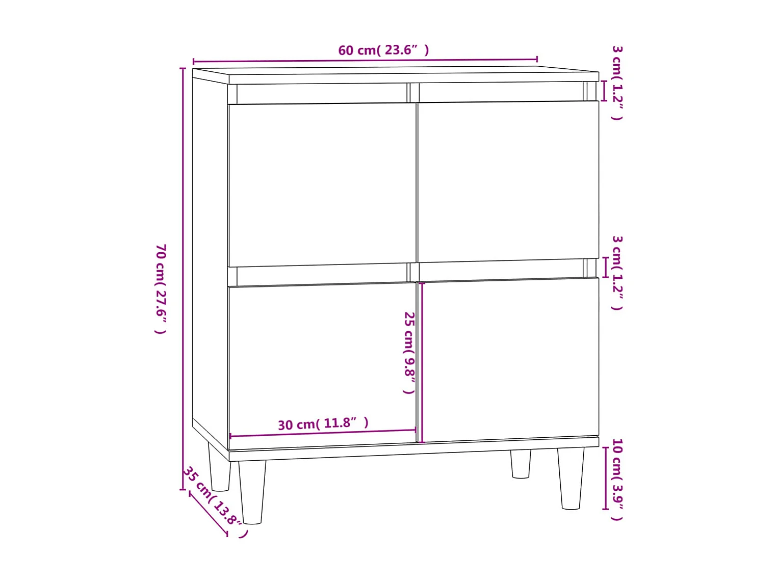 Credenza con Gambe Legno Massello Sonoma 60x35x70cm Multistrato