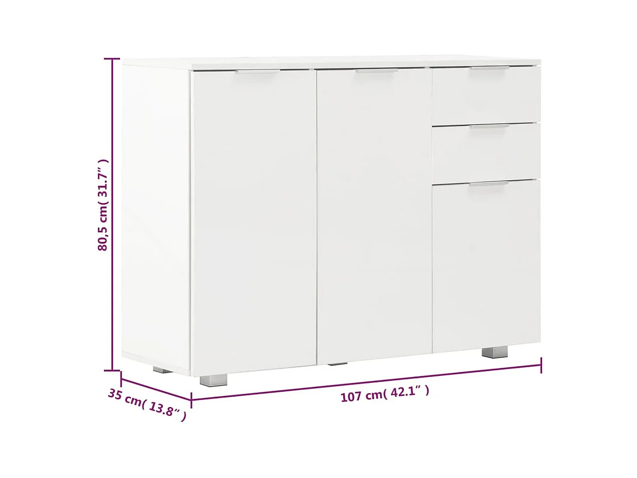 Credenza cassettiera cassettiera mobile contenitore organizer cucina soggiorno lucido 107 x 35 x 80,5 cm bianco 02_0030571