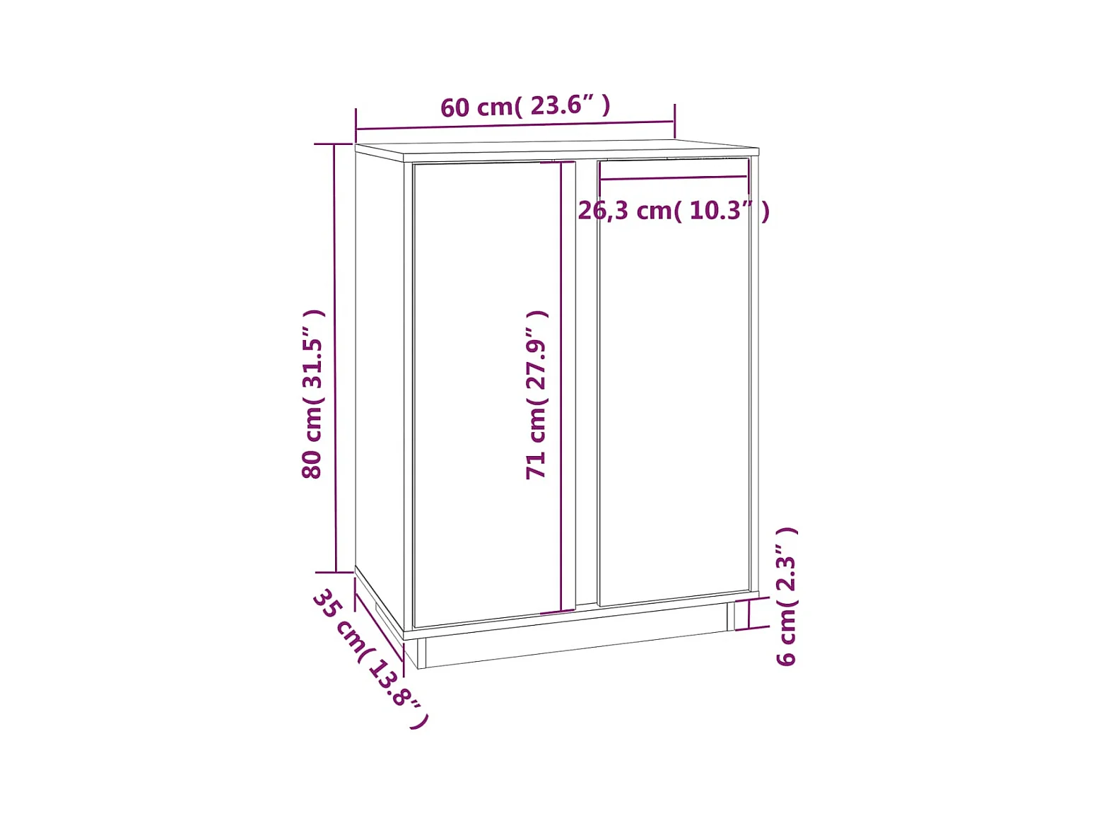 Credenza Nera 60x35x80 cm in Legno Massello di Pino
