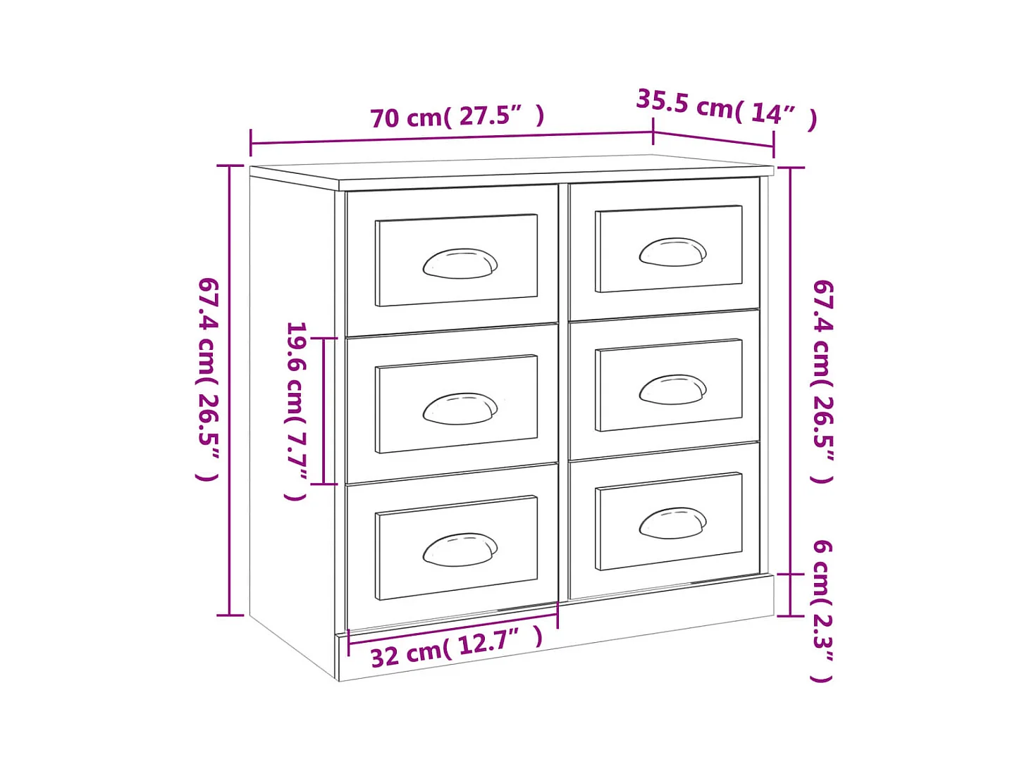 Credenza cassettiera cassettiera mobile contenitore organizer cucina soggiorno soggiorno 70 x 35,5 x 67,5 cm derivati del legno bianco 02_0030488