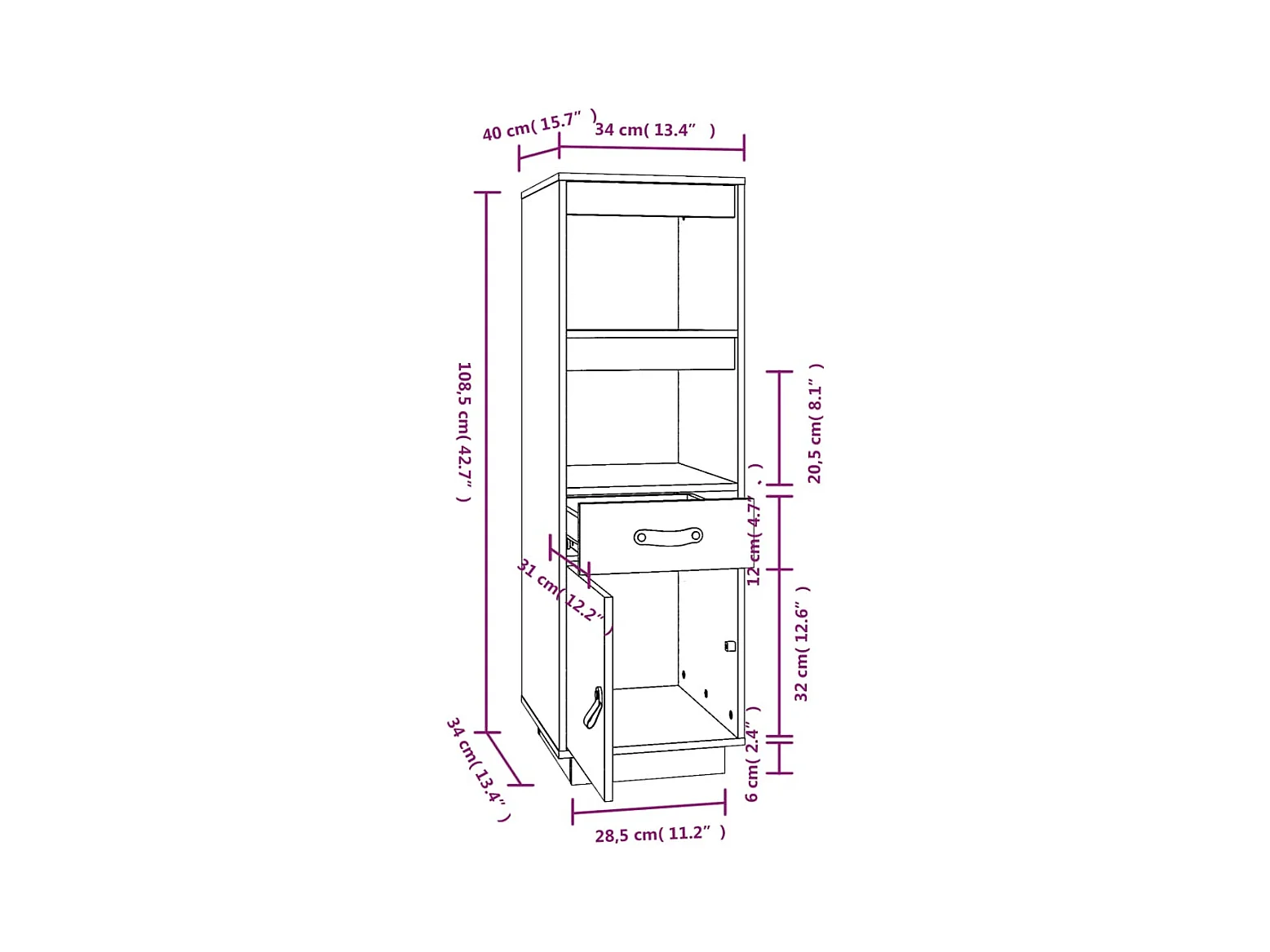 Credenza cassettiera cassettiera mobile contenitore organizer cucina soggiorno soggiorno alto 34 x 40 x 108,5 cm legno massello di pino nero 02_0034910