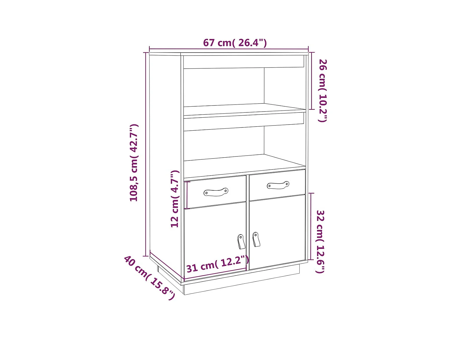 Credenza cassettiera cassettiera mobile contenitore organizer cucina soggiorno soggiorno alto 67 x 40 x 108,5 cm legno massello di pino nero 02_0034955