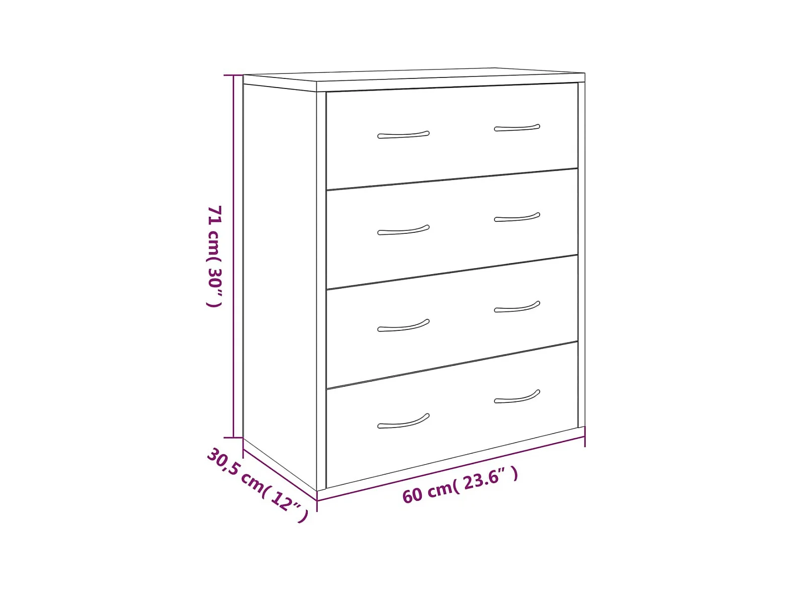 Credenza con 4 Cassetti 60x30,5x71 cm Grigio sonoma
