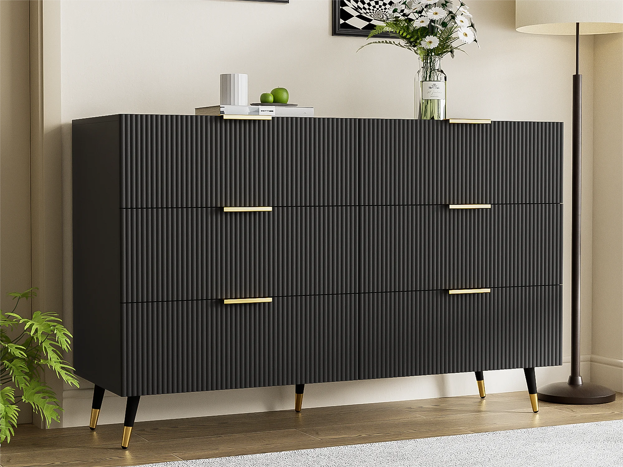 Credenza、Cassettiera moderna - 6 cassetti - pannelli di particelle - Nero