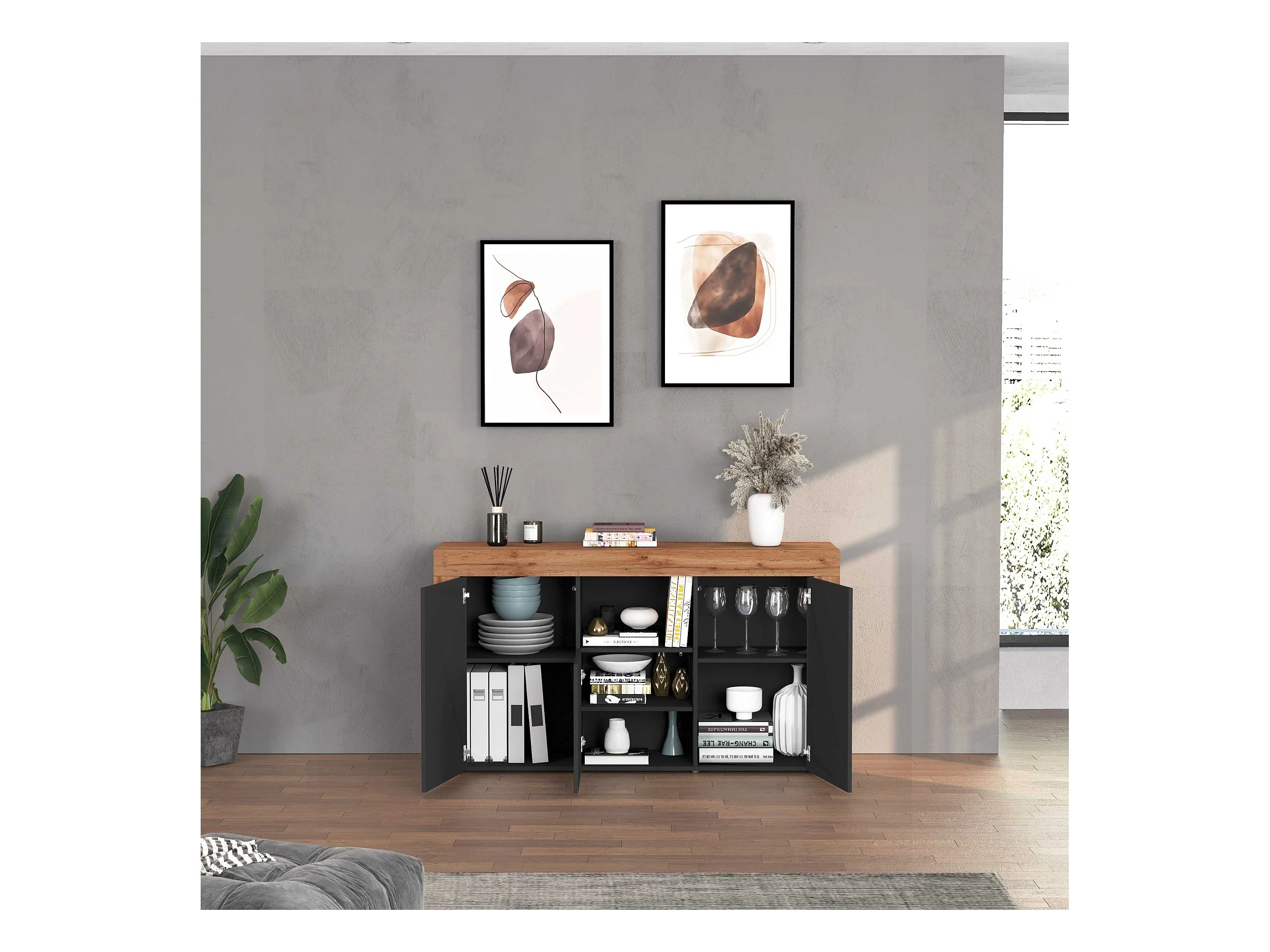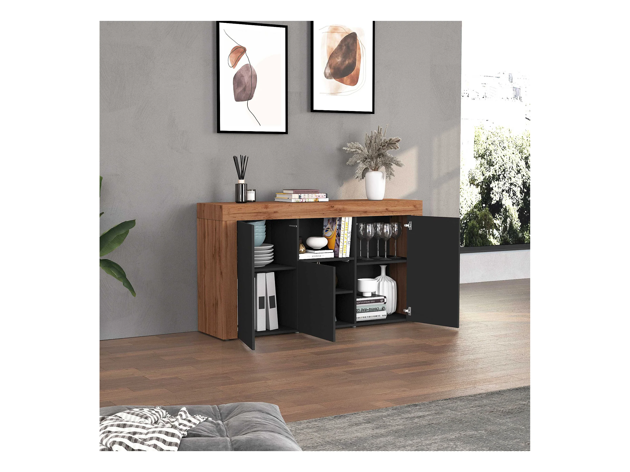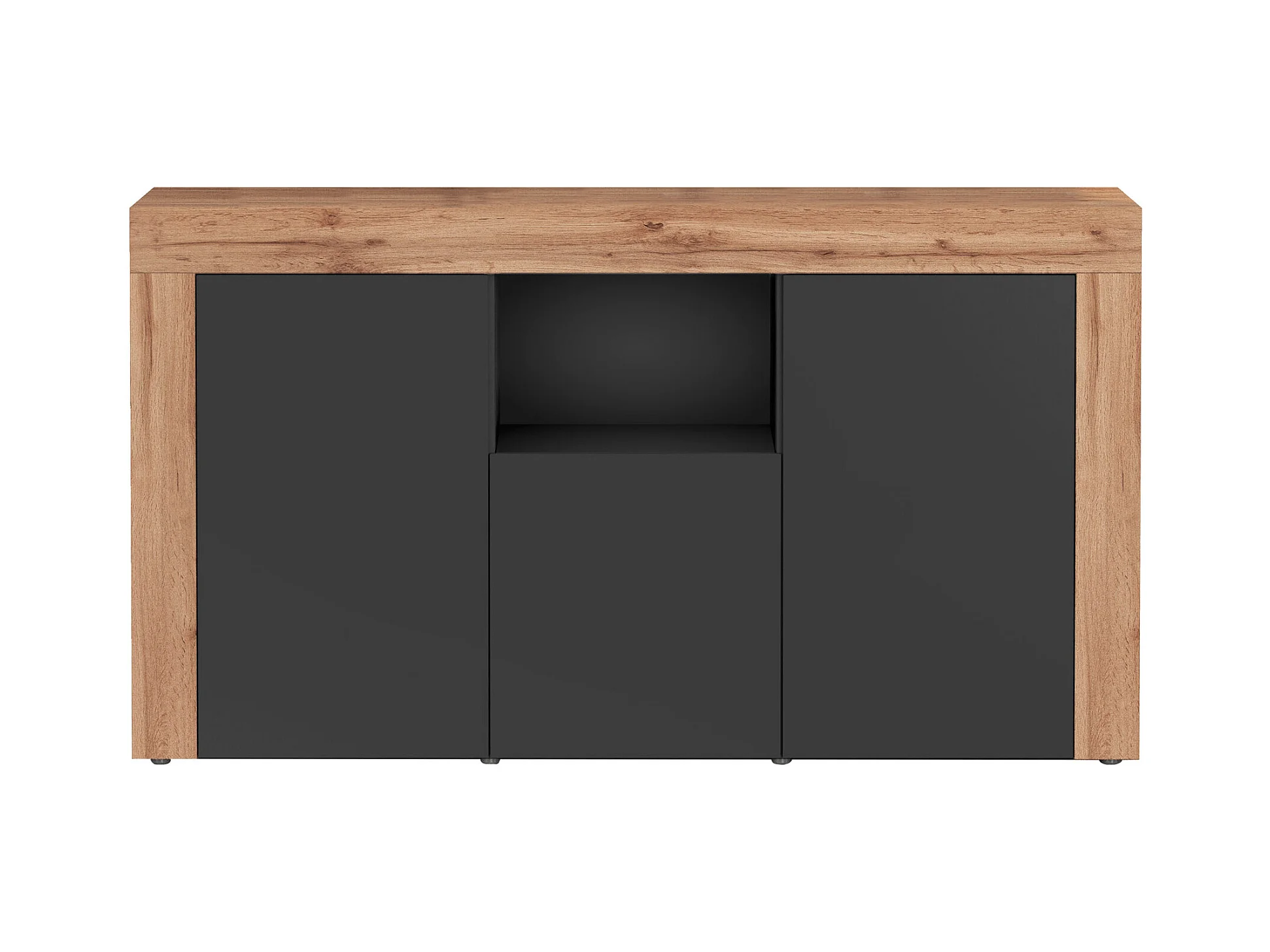 Credenza Chronos 3 ante e 1 vano antracite opaco e rovere 155x40x85 cm