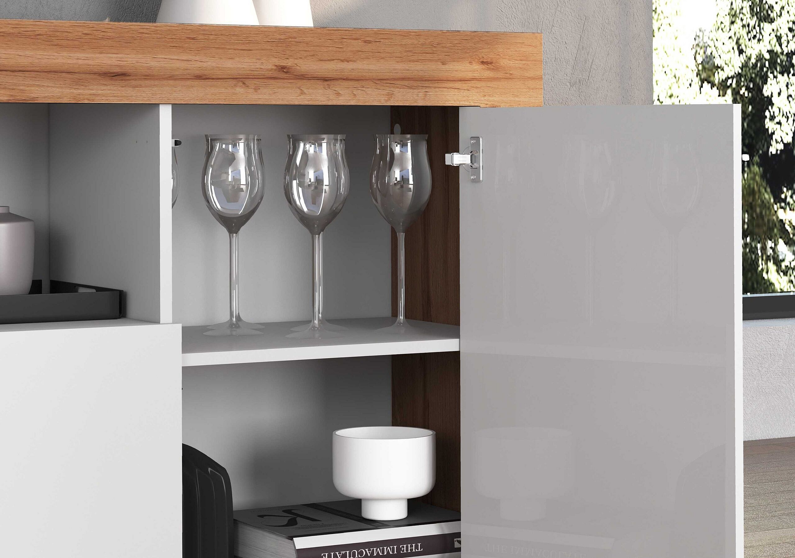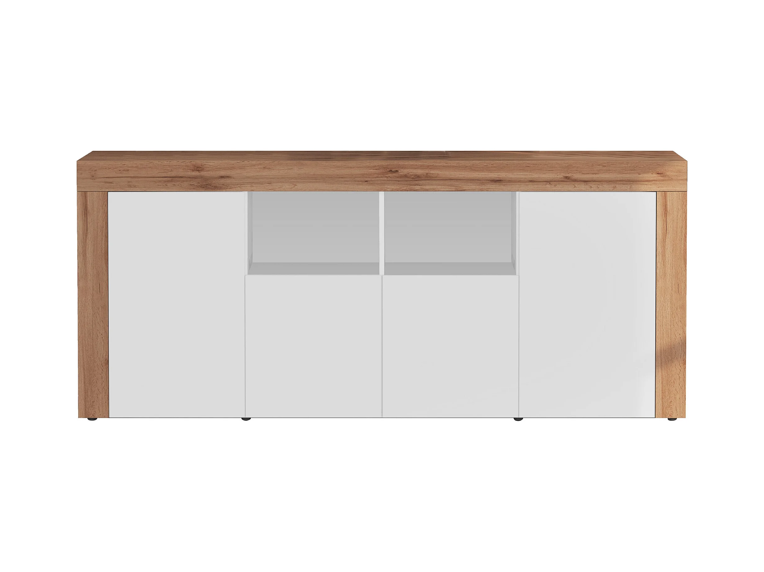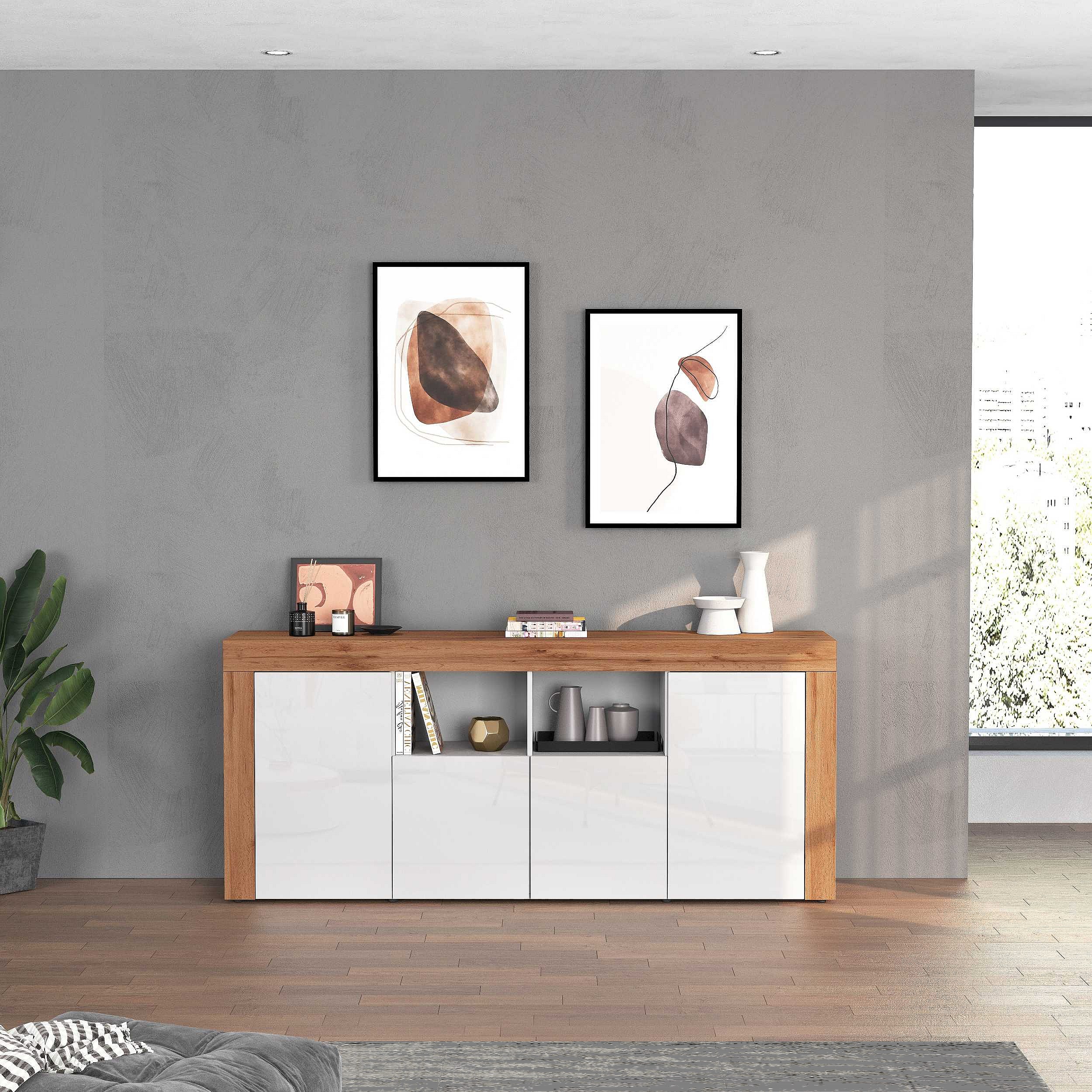 Credenza Chronos 4 ante e 2 vani bianco lucido e rovere 200x40x85 cm