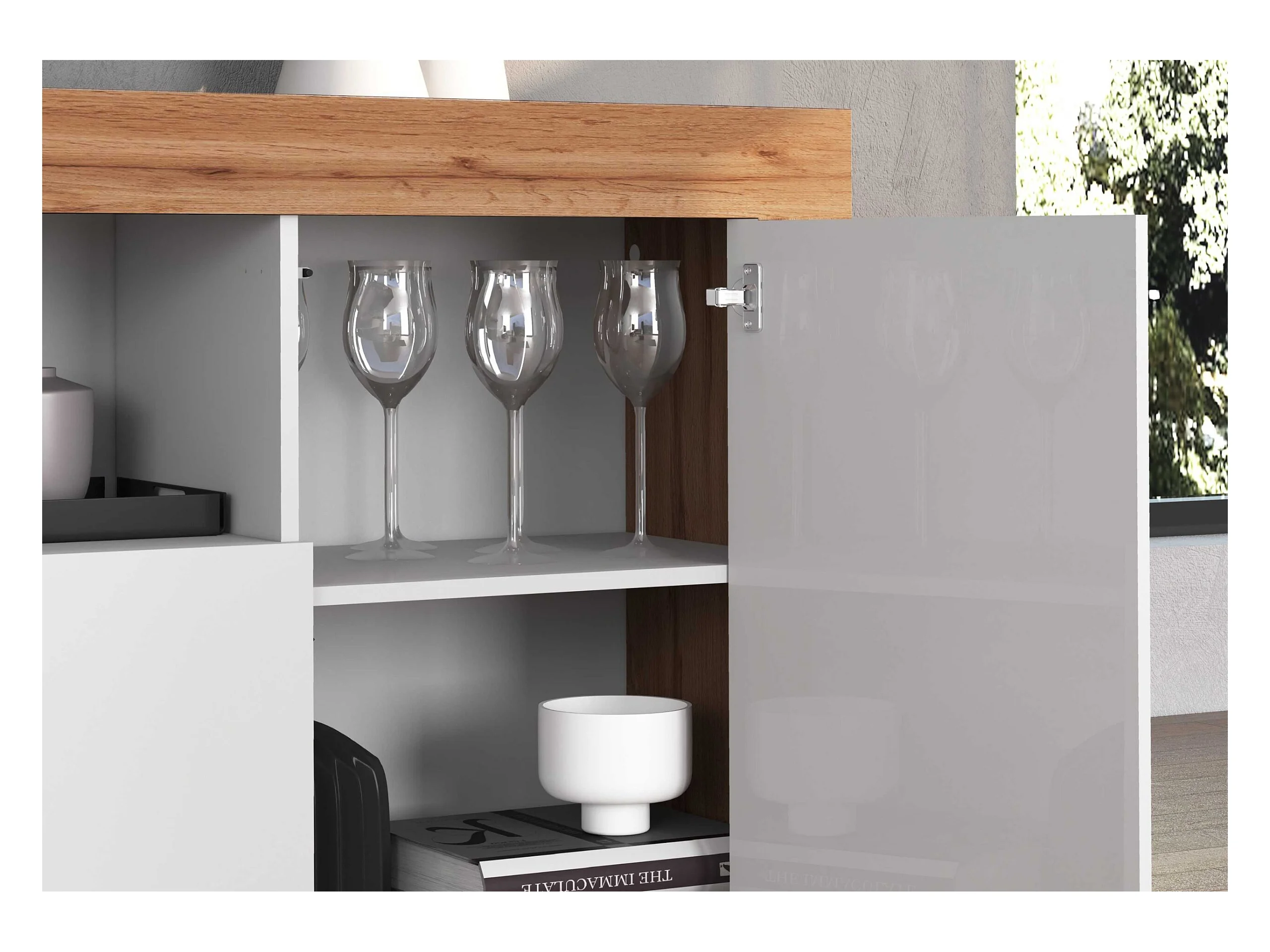 Credenza Garda 4 ante e 2 cassetti bianco lucido e rovere 160,1x35x70 cm