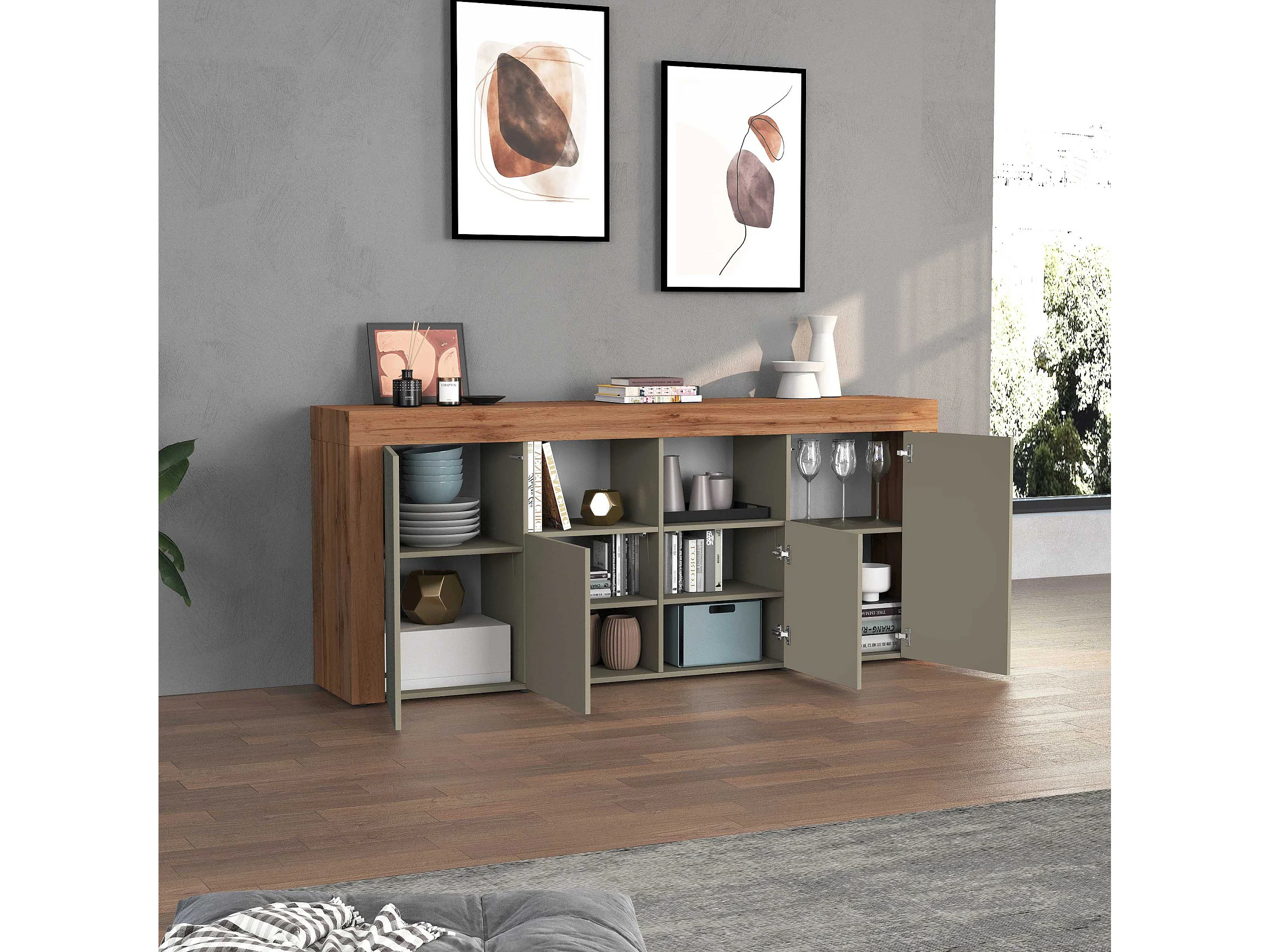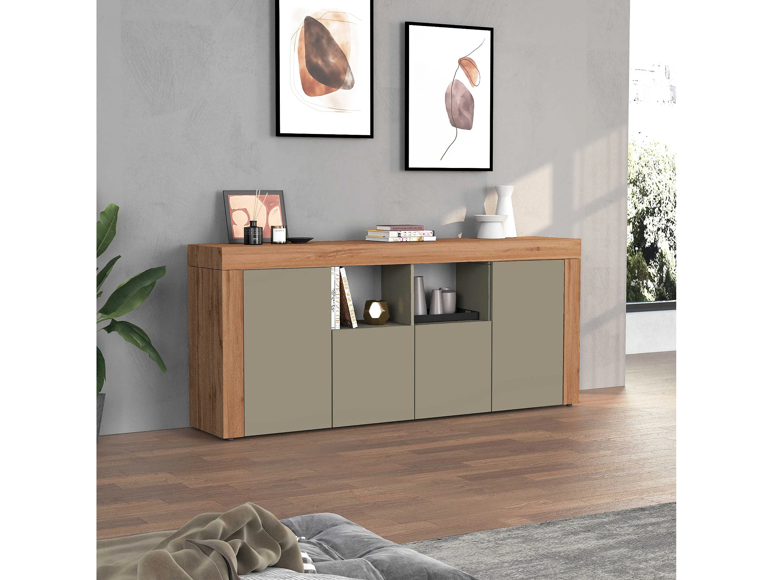 Credenza Chronos 4 ante e 2 vani tortora opaco e rovere 200x40x85 cm