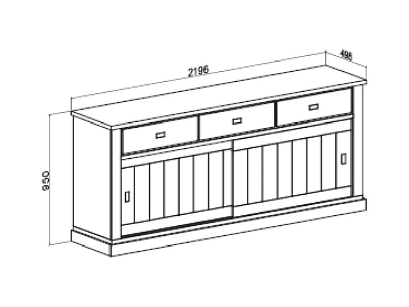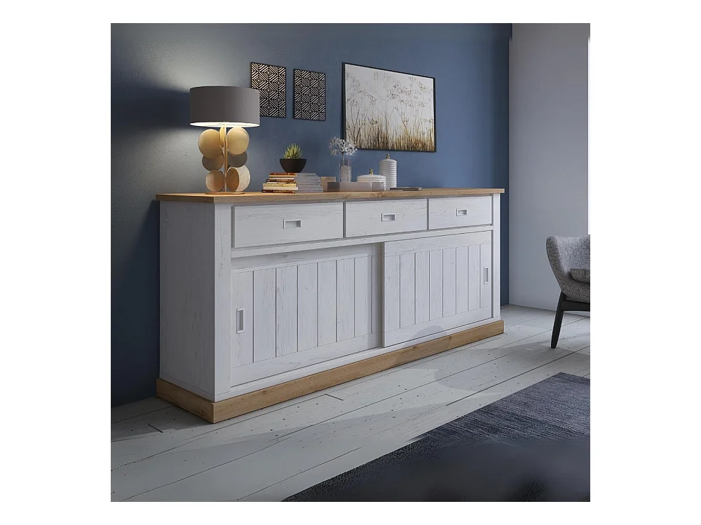 Credenza colore pino bianco e rovere wotan 3 cassetti e 2 ante scorrevoli Anthony67070 219,6x49,8x95H stile shabby