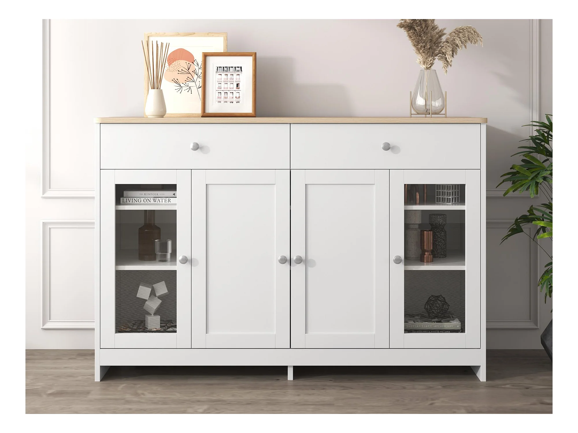 Credenza con 2 cassetti e ante in vetro - per soggiorno e sala da pranzo - Bianco