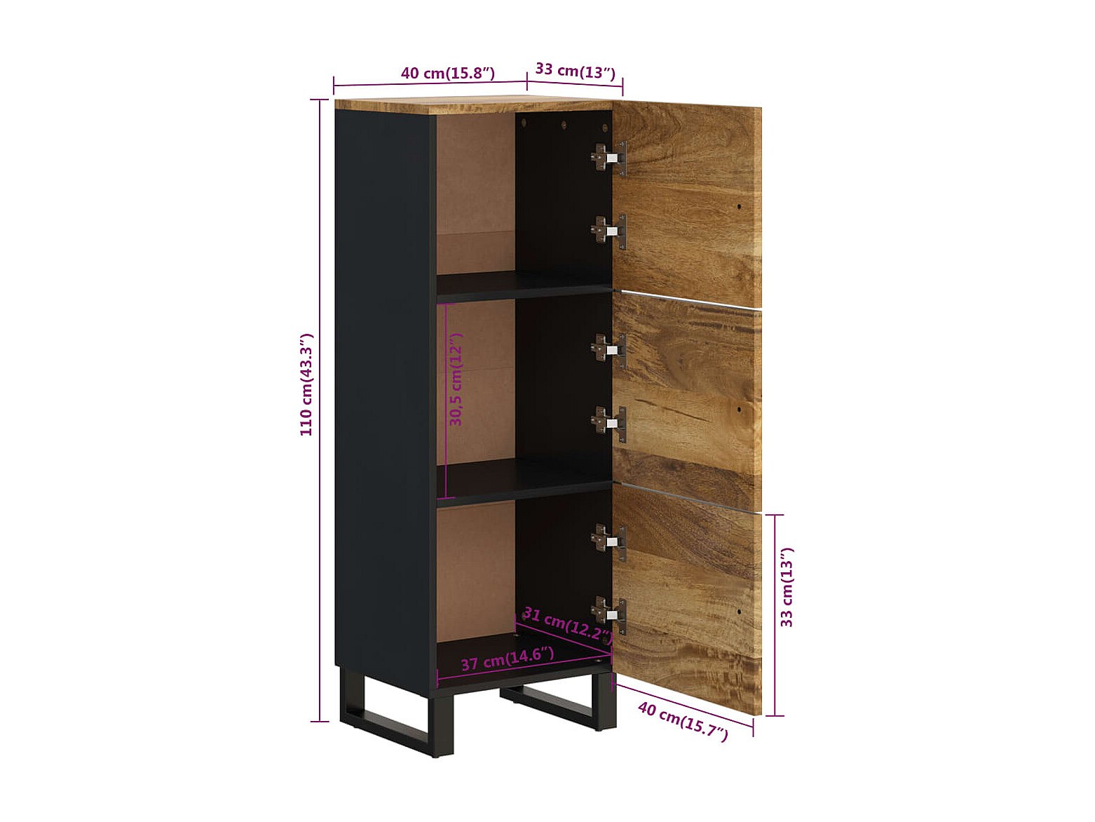 Credenza con 3 Ante 40x33x110 cm Legno Massello Mango e Ferro