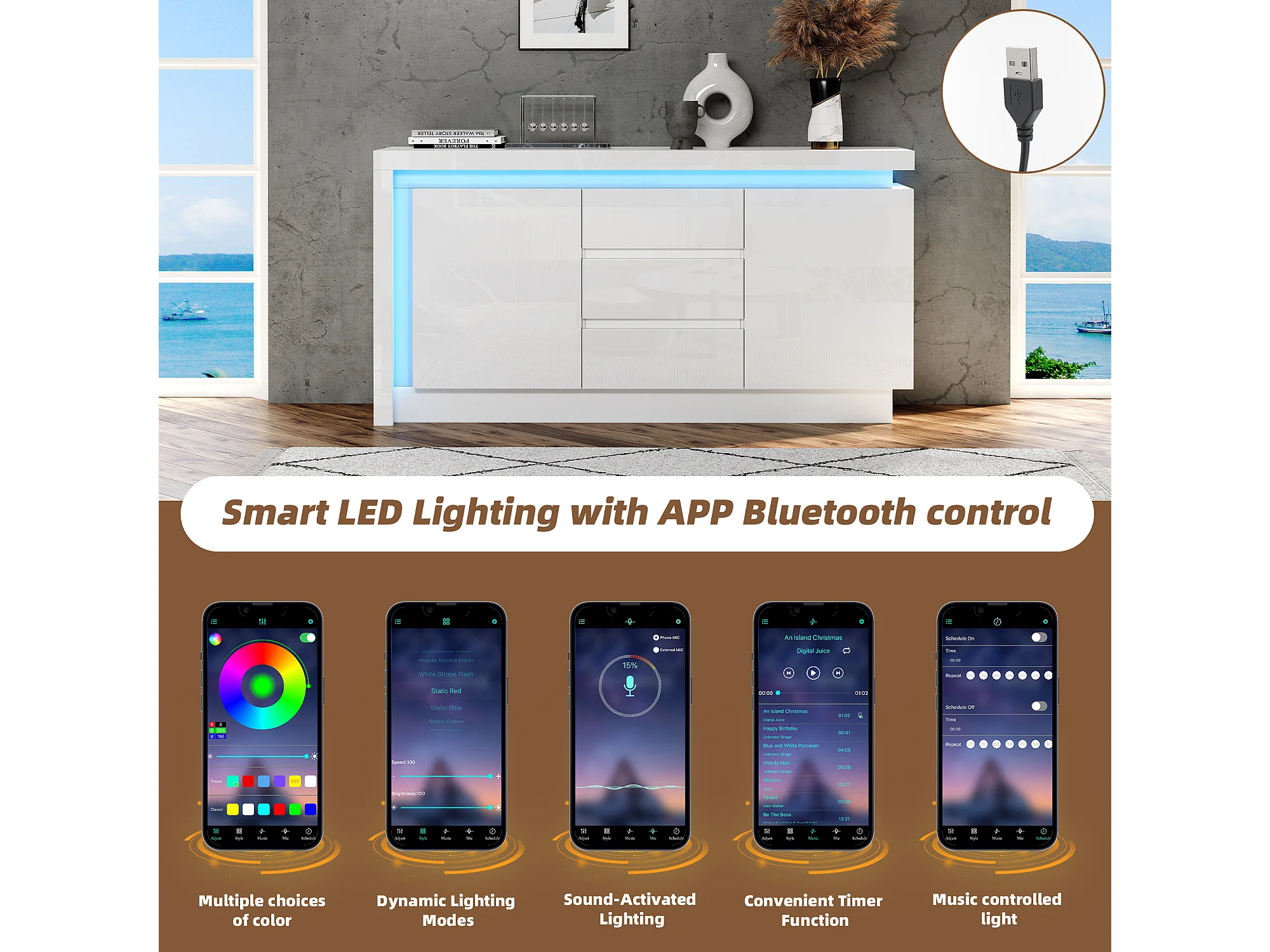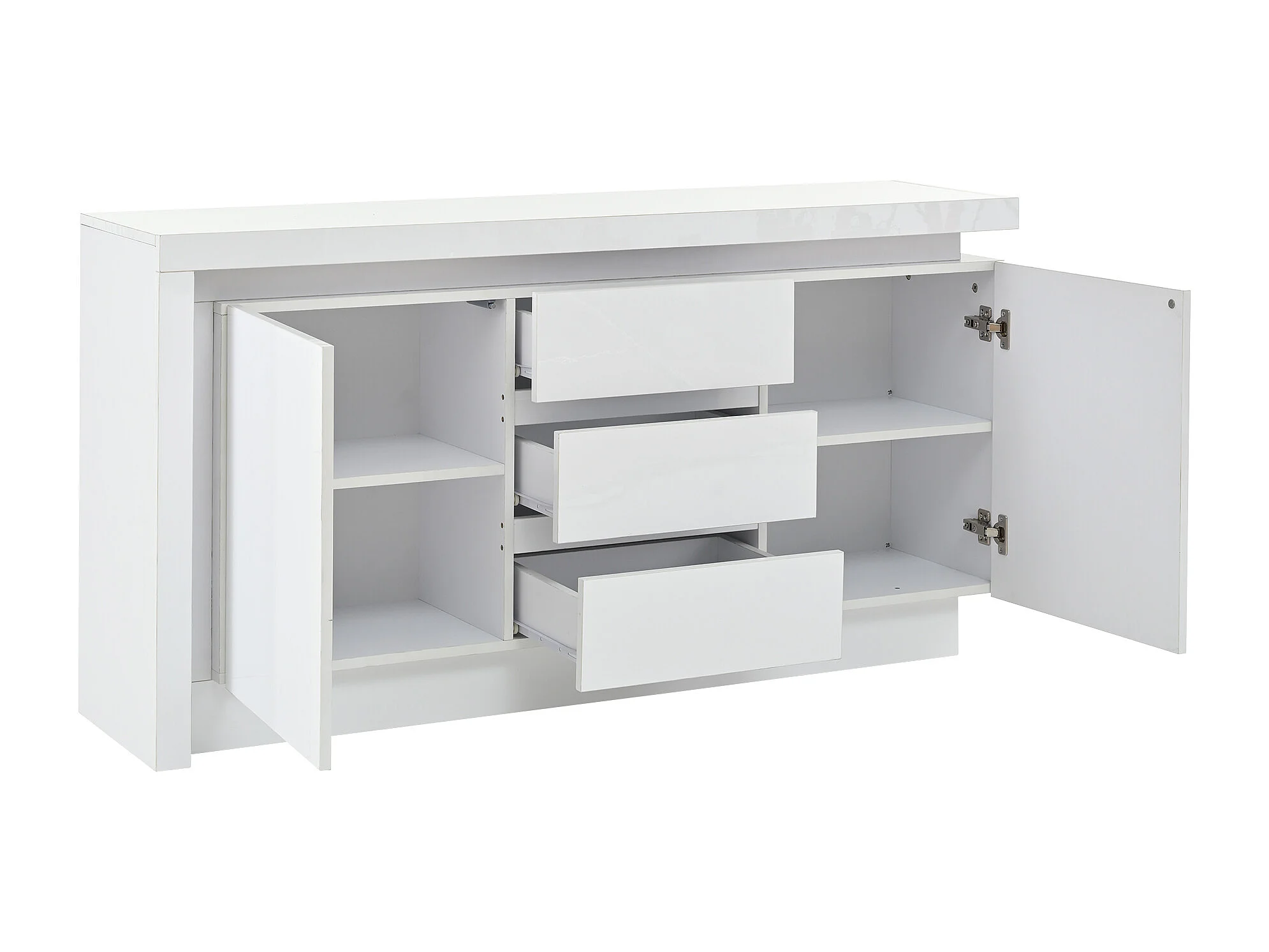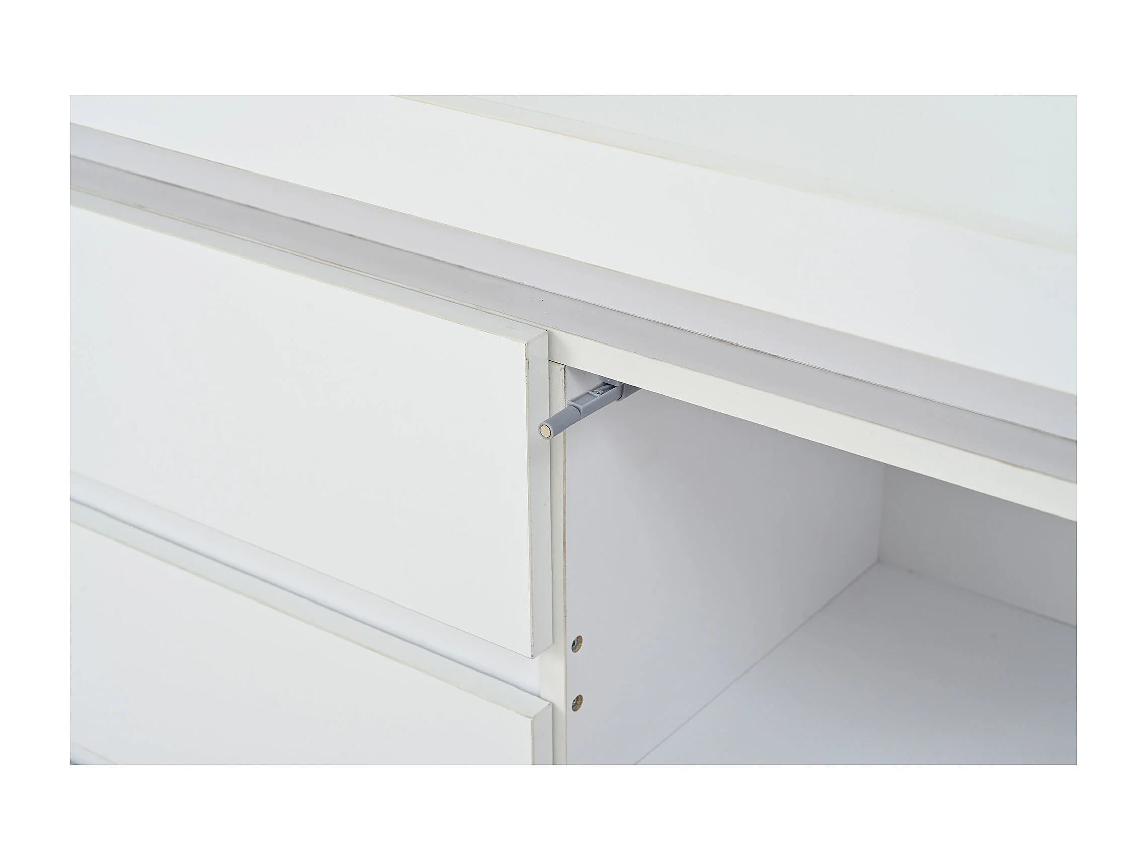 Credenza con 3 cassetti e 2 ante, con illuminazione a LED, senza maniglie, 140 x 35 x 72,5 cm - Bianco