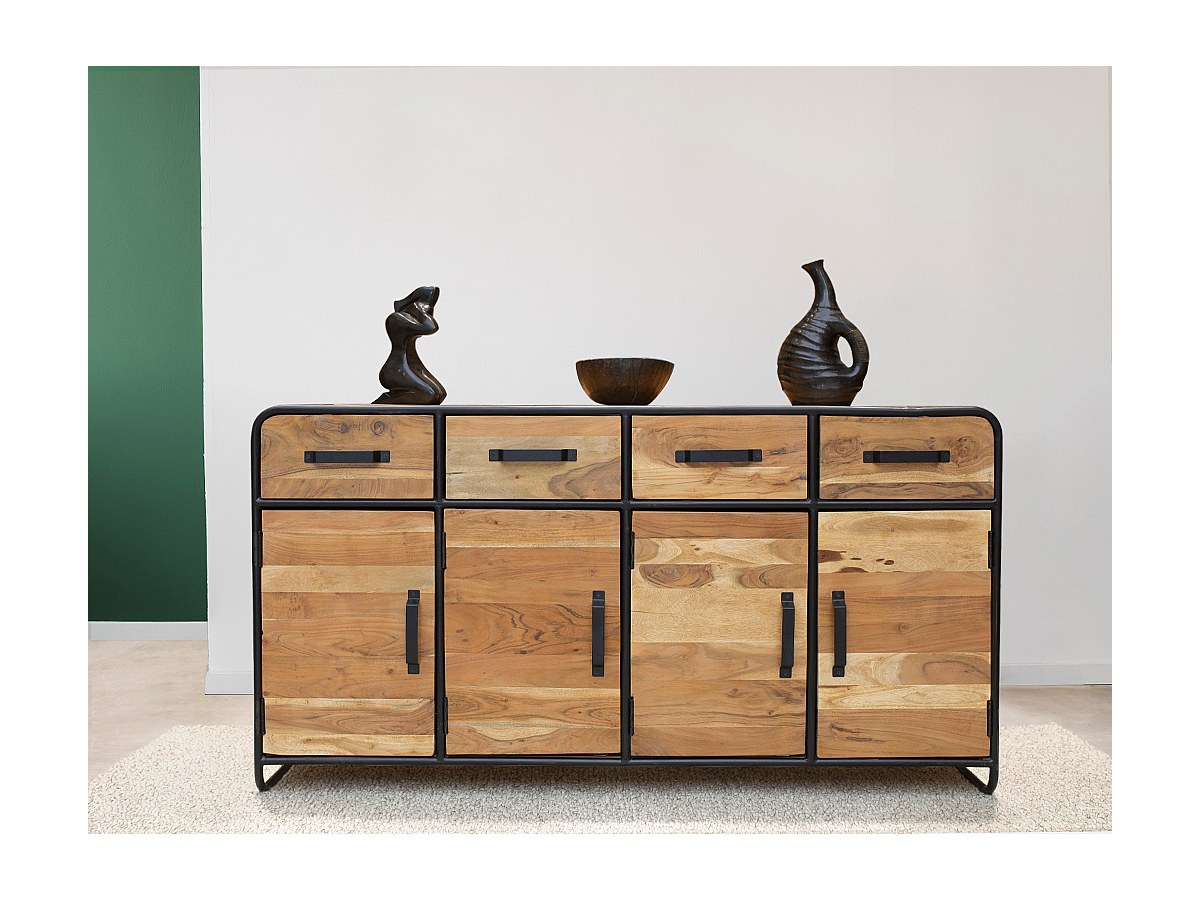 Credenza con 4 ante e 4 cassetti in Acacia e Metallo - CHICAGO