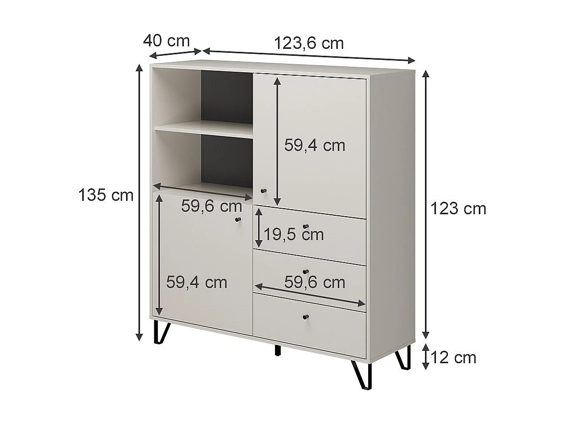 Credenza con ante cassetti e vano a giorno cachemire ALDO6 123,6x40x135H